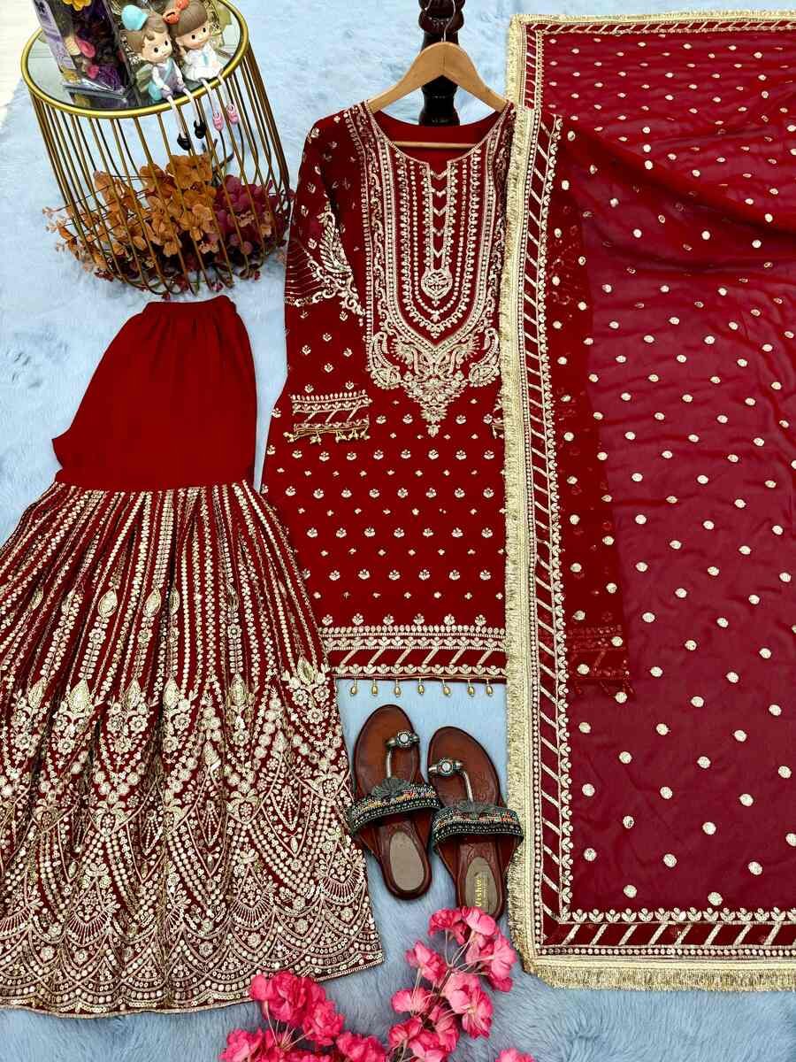 FANCY GEORGETTE EMBROIDERY SEQUENCE WITH LATKAN BORDER WORK TOP SHARARA WITH DUPATTA RED