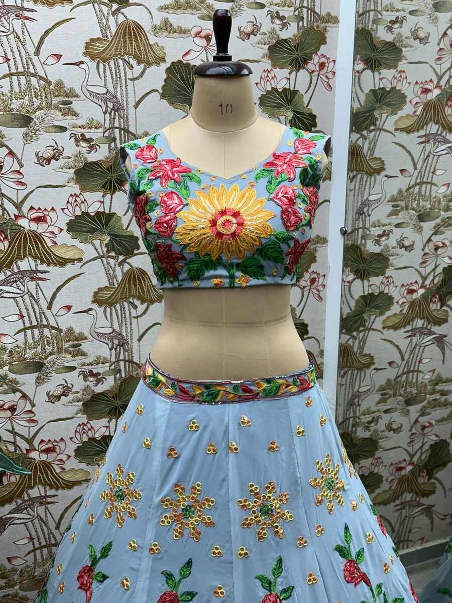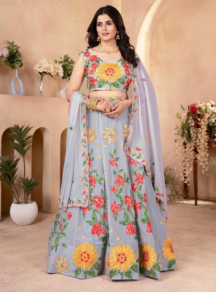 FANCY GEORGETTE EMBROIDERY SEQUENCE WORK LEHENGA CHOLI WITH DUPATTA GREY