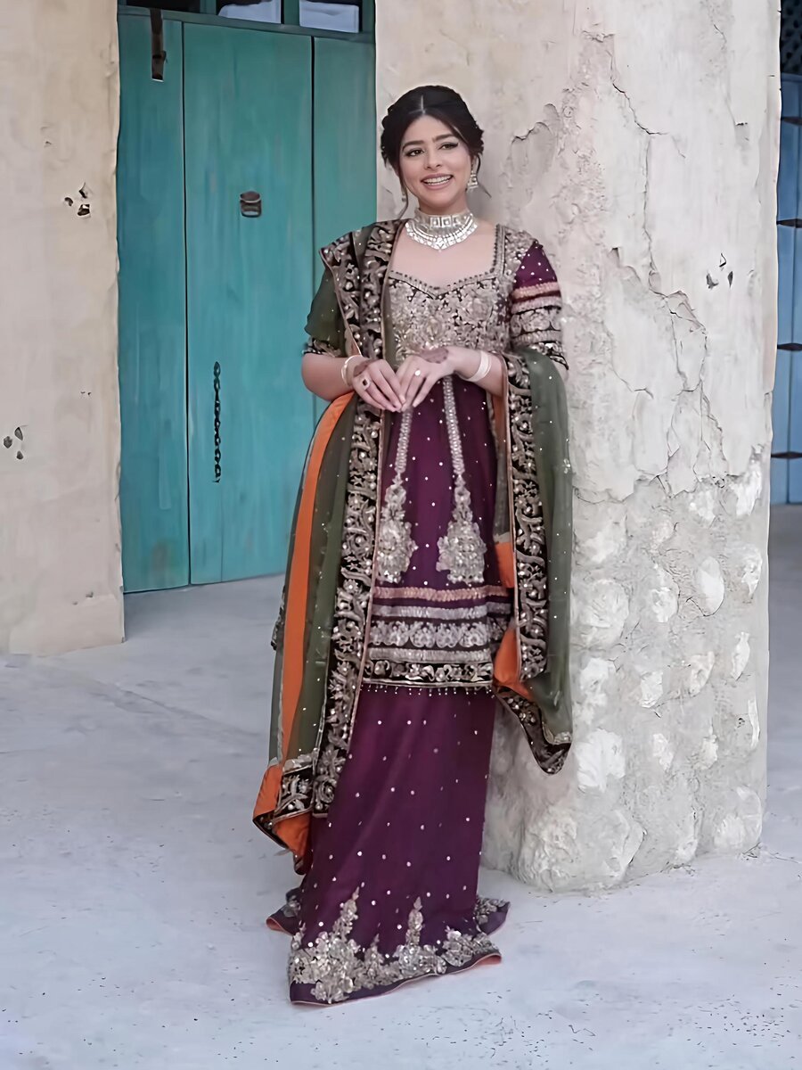 WORK : HEAVY EMBROIDERY 5 MM SEQUENCE WORK WITH EMBROIDERY SLEEVE