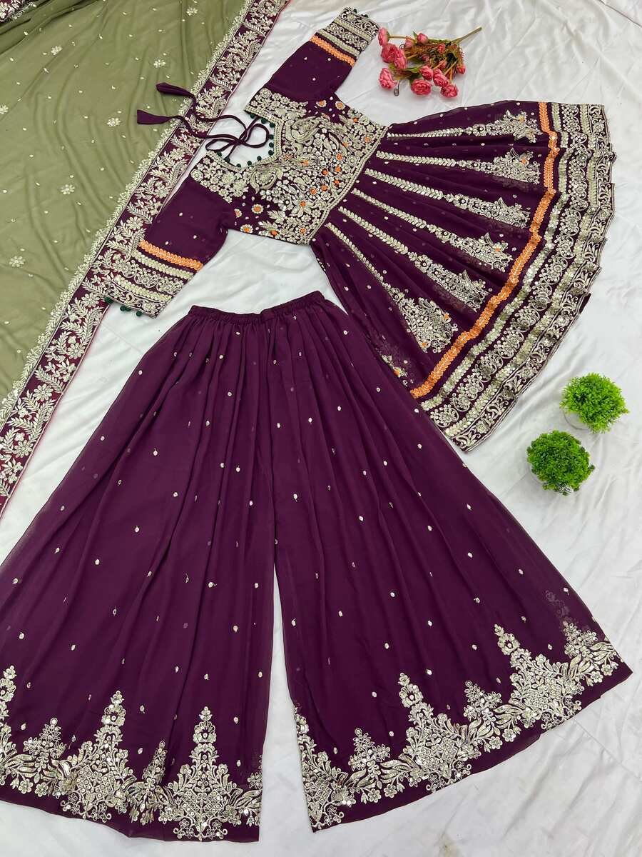 FANCY GEORGETTE EMBROIDERY SEQUENCE WORK TOP PALAZZO WITH DUPATTA WINE