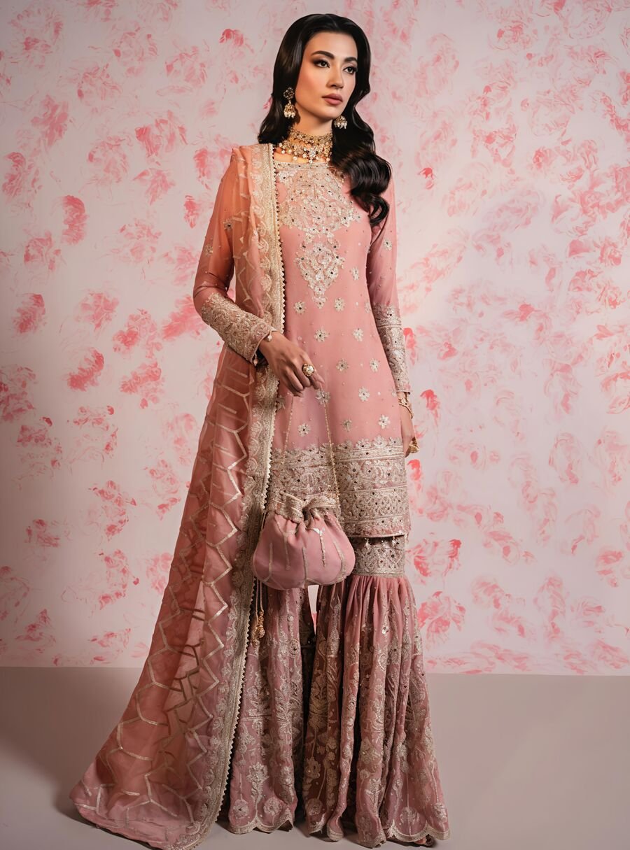 WORK : HEAVY EMBROIDERY SEQUENCE WORK WITH RIVET MOTI WORK WITH FULL SLEEVE