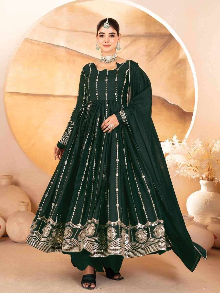 FABRIC :- STAR GEORGETTE WITH HEAVY 3/5MM SEQUENCE & MULTI THREAD EMBROIDERED WORK