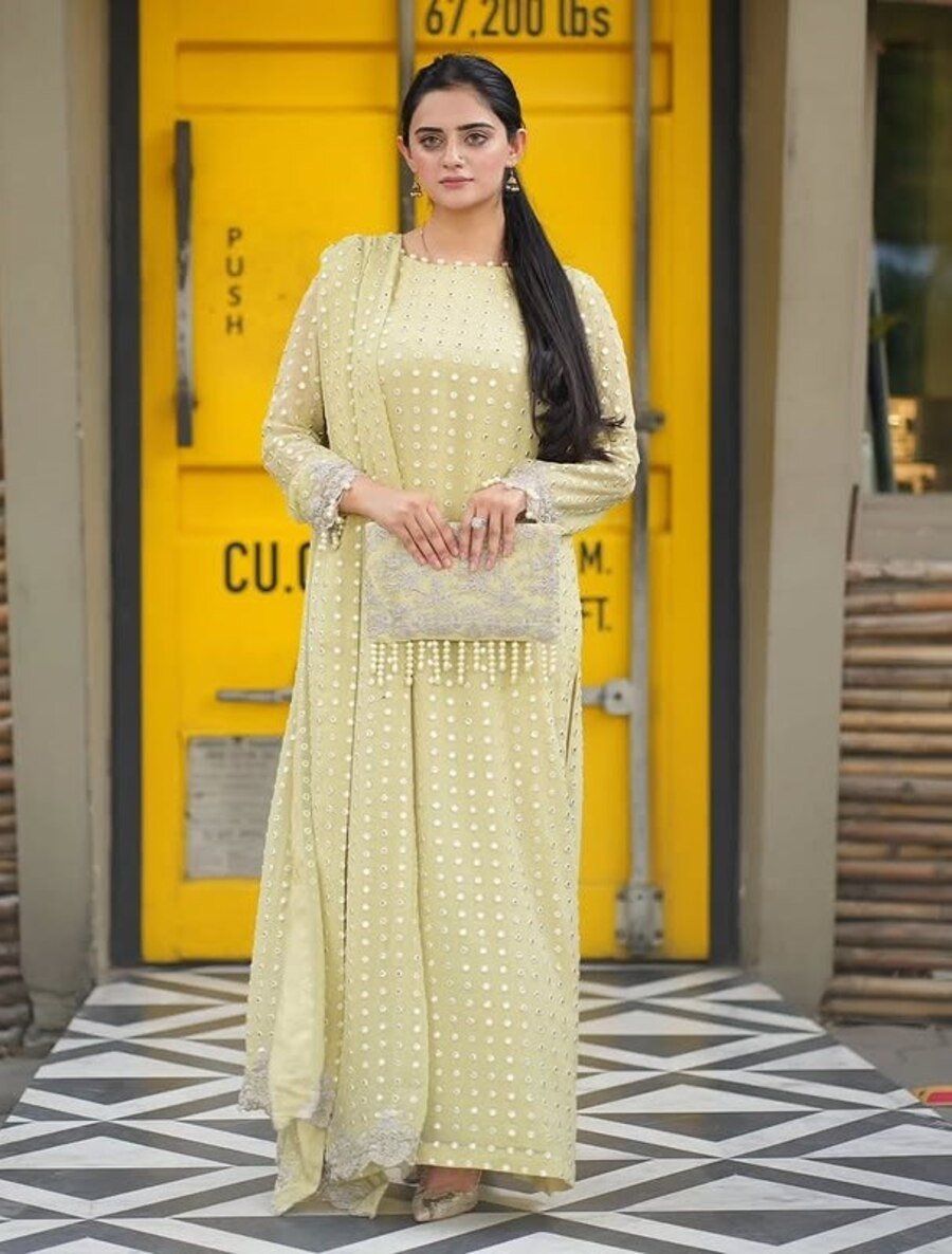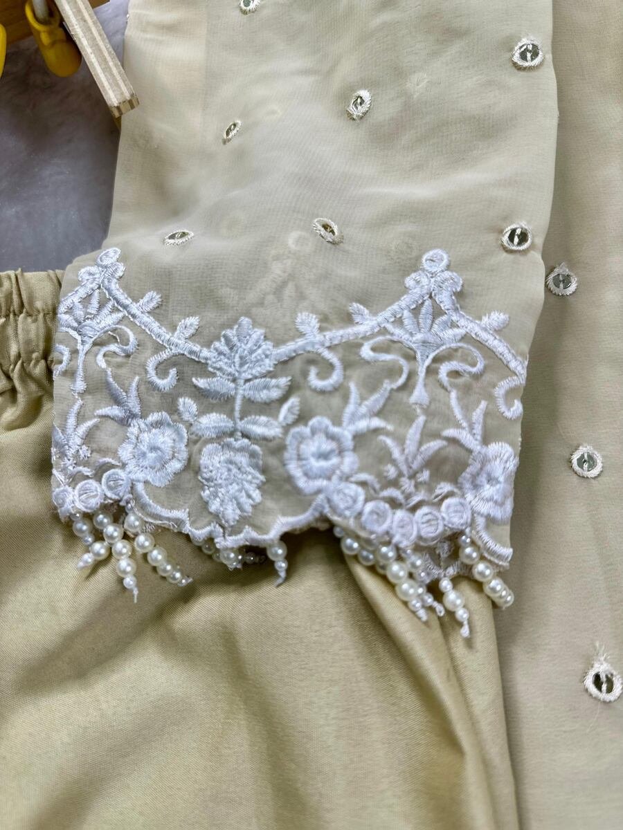 WORK : EMBROIDERY , ZARI AND SEQUENCE WITH PEARL MOTI HANDWORK