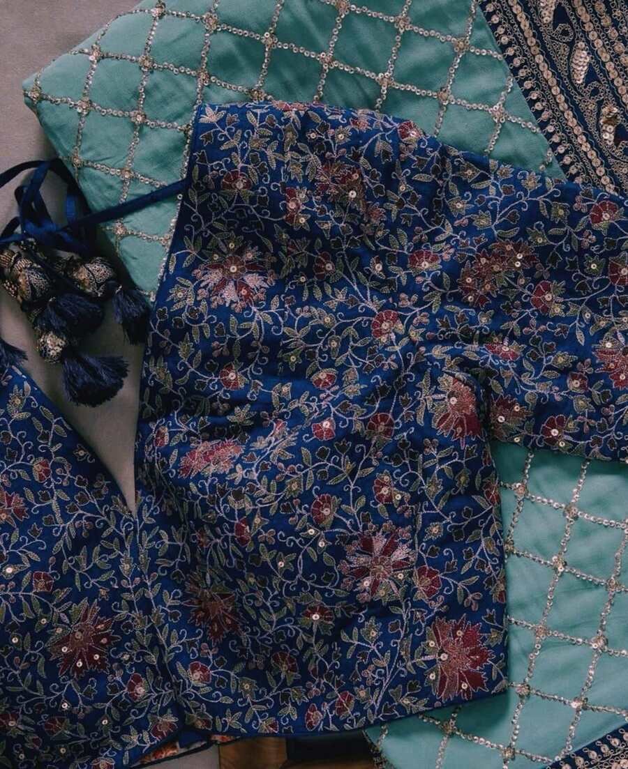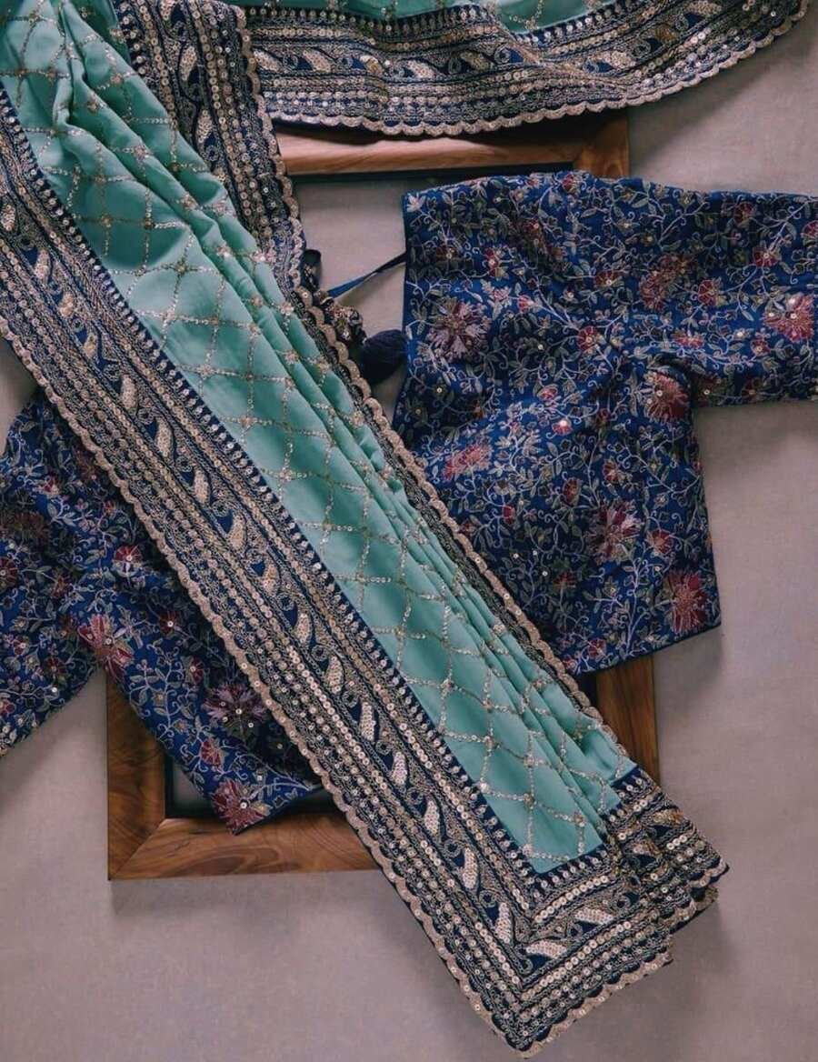 FANCY GEORGETTE EMBROIDERY ZARI, CODING WITH SEQUENCE WORK SAREE WITH UNSTITCHED BLOUSE SKY