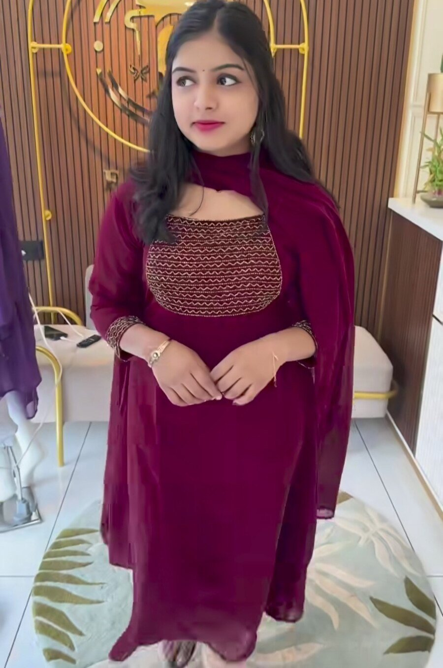 FANCY GEORGETTE HAND WORK TOP WITH DUPATTA MAROON