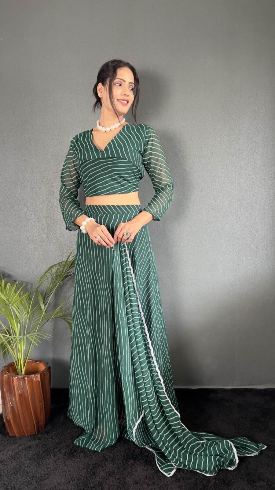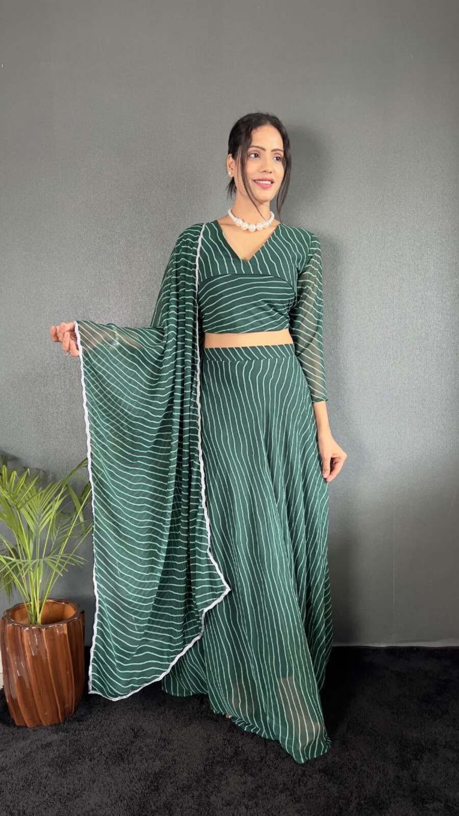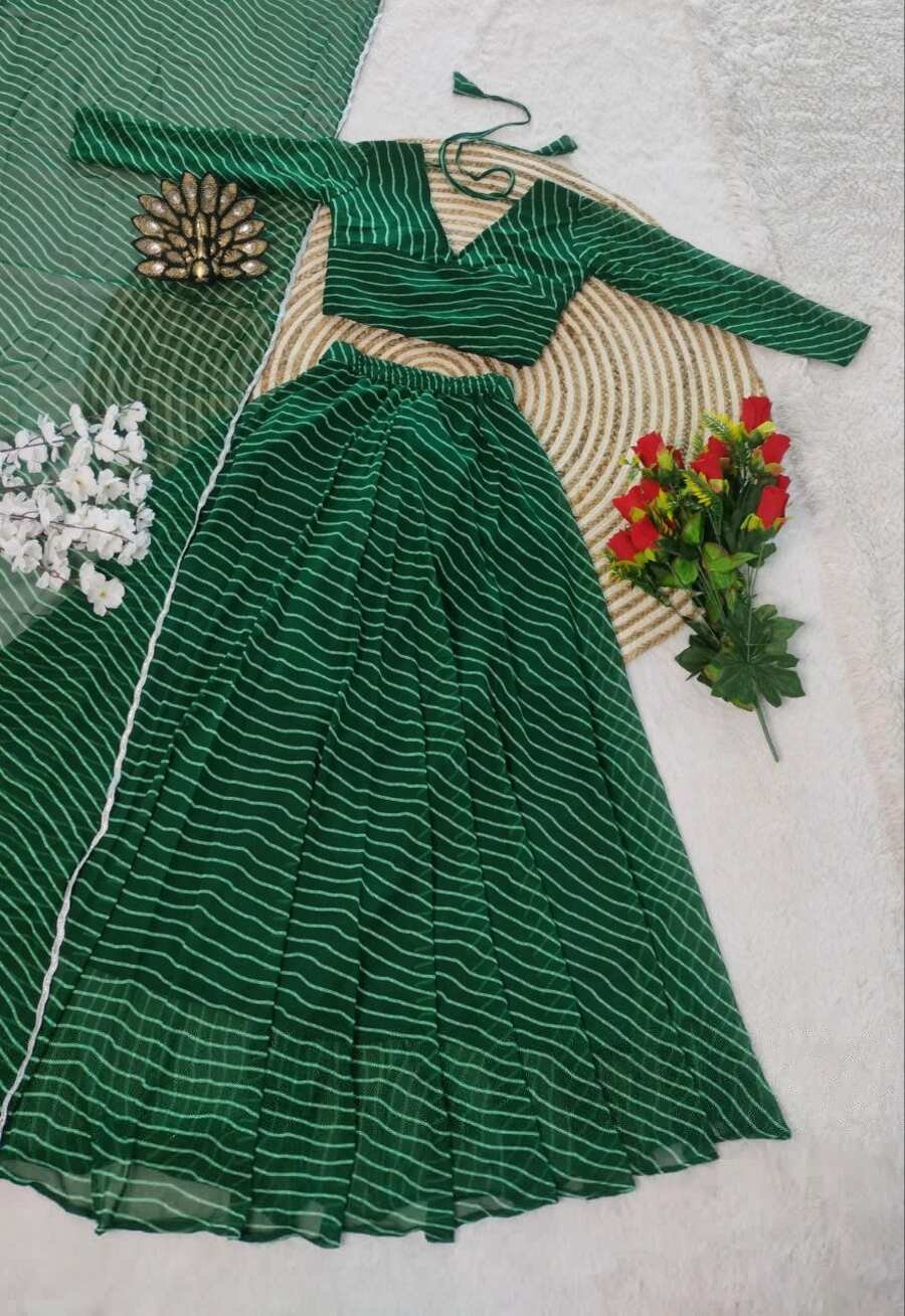 FANCY GEORGETTE LAHERIYA PRINTED LACE WORK LEHENGA CHOLI WITH DUPATTA GREEN