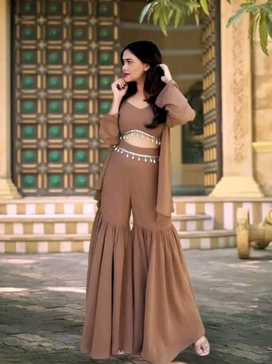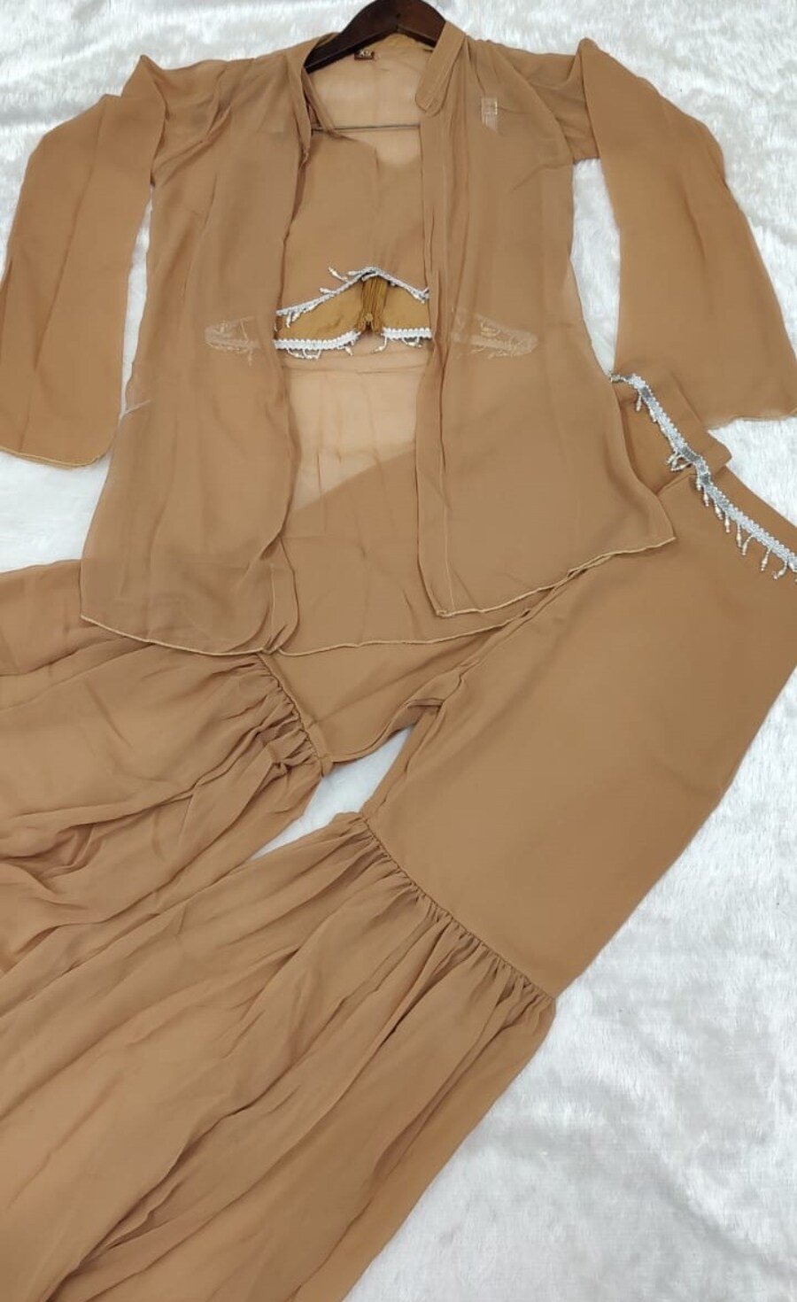 FANCY GEORGETTE LATKAN WORK BOLOUSE KOTI WITH SHARARA CREAM