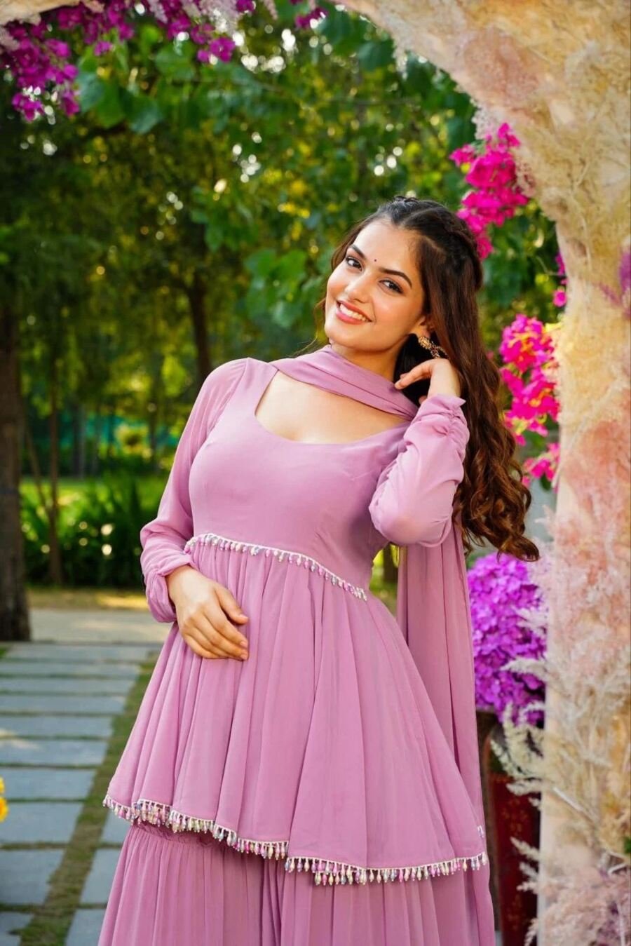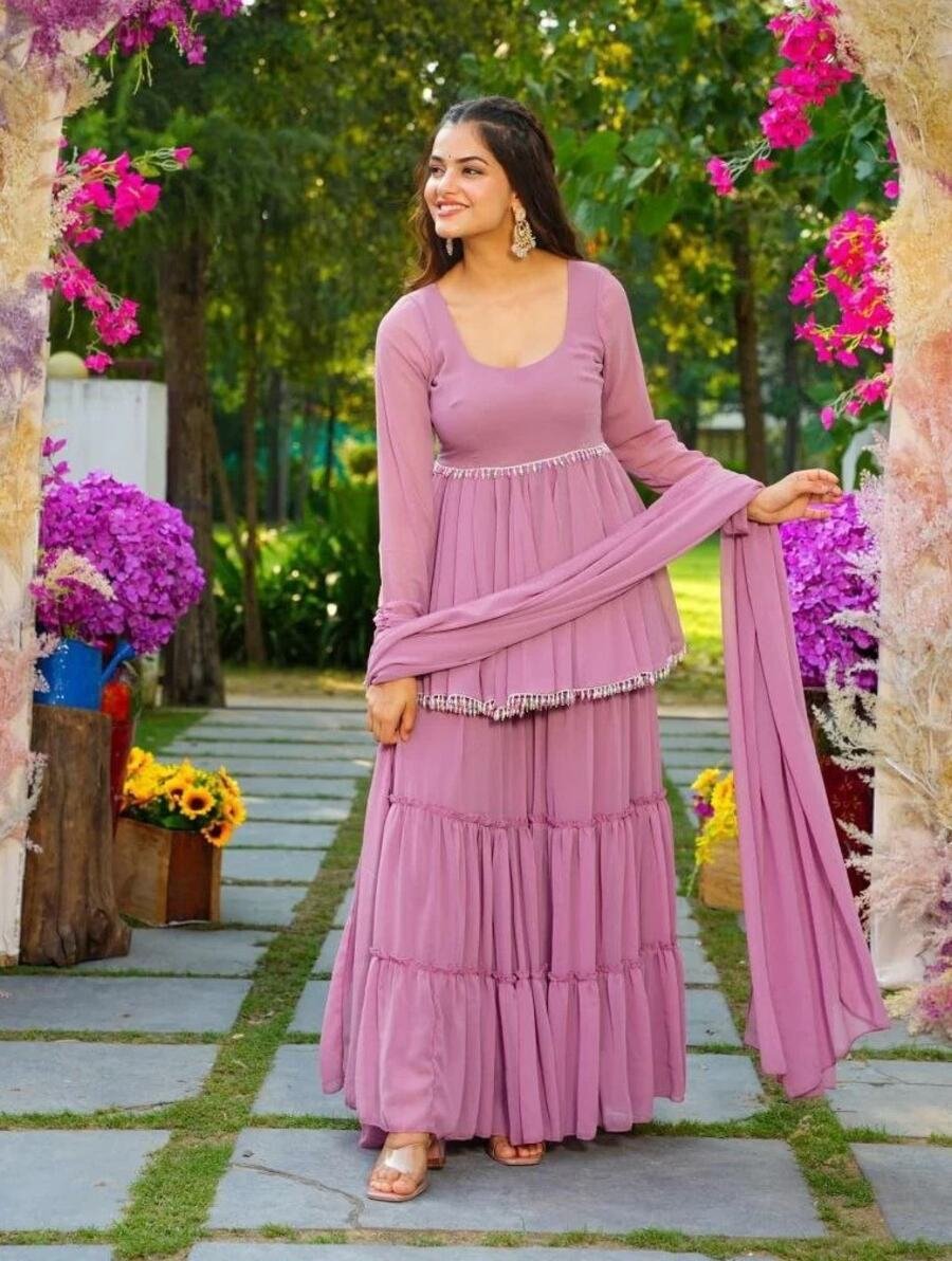 FANCY GEORGETTE LATKAN WORK TOP SHARARA WITH DUPATTA BABY PINK