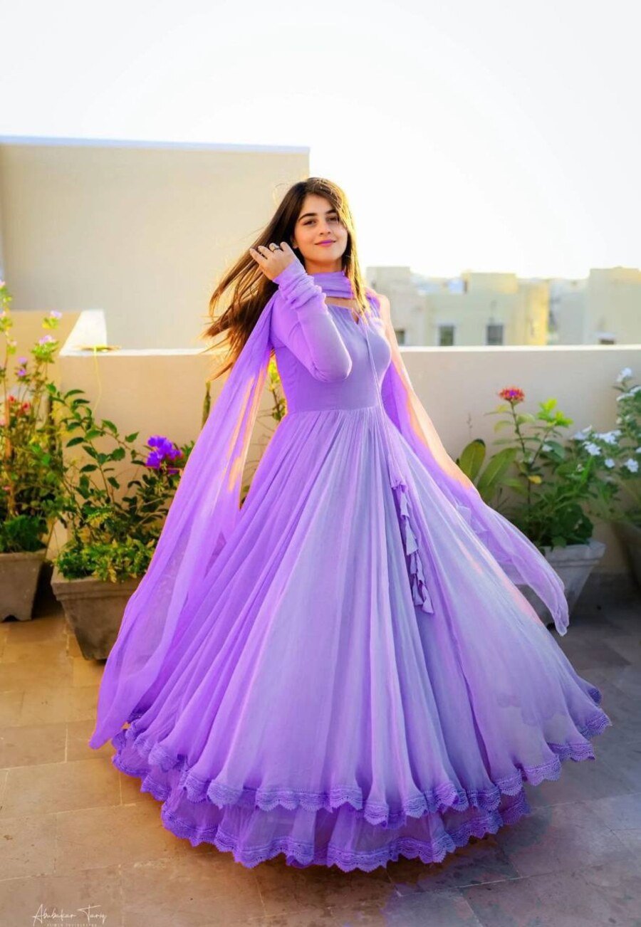 FANCY GEORGETTE LINNING WORK GOWN PANT WITH DUPATTA LAVENDER