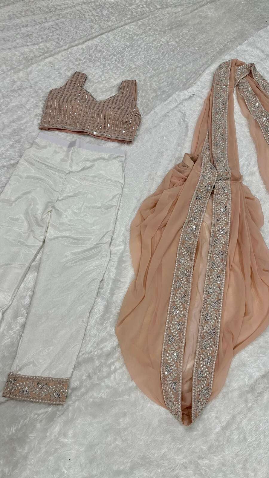 FABRIC :- CHINON SILK PANT WITH SEQUENCE & RESHAM THREAD WORK