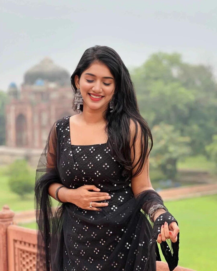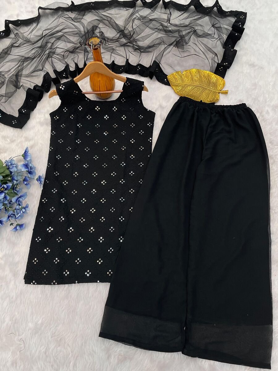FANCY GEORGETTE THREAD MIRROR WORK TOP PALAZZO WITH DUPATTA BLACK