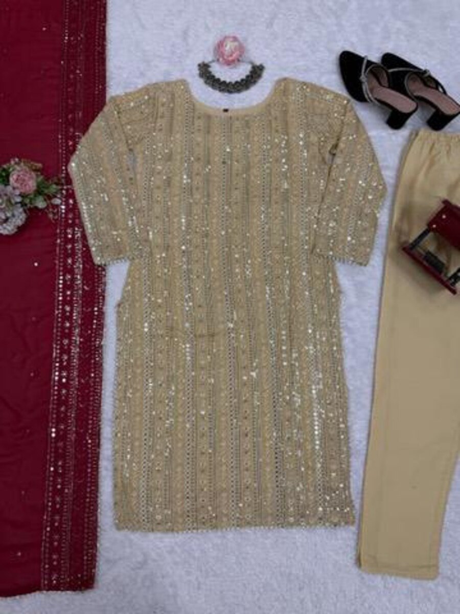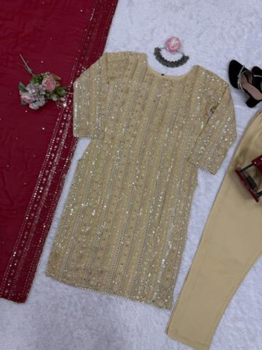 FANCY GEORGETTE THREAD WITH SEQUENCE WORK TOP BOTTOM WITH DUPATTA MAROON
