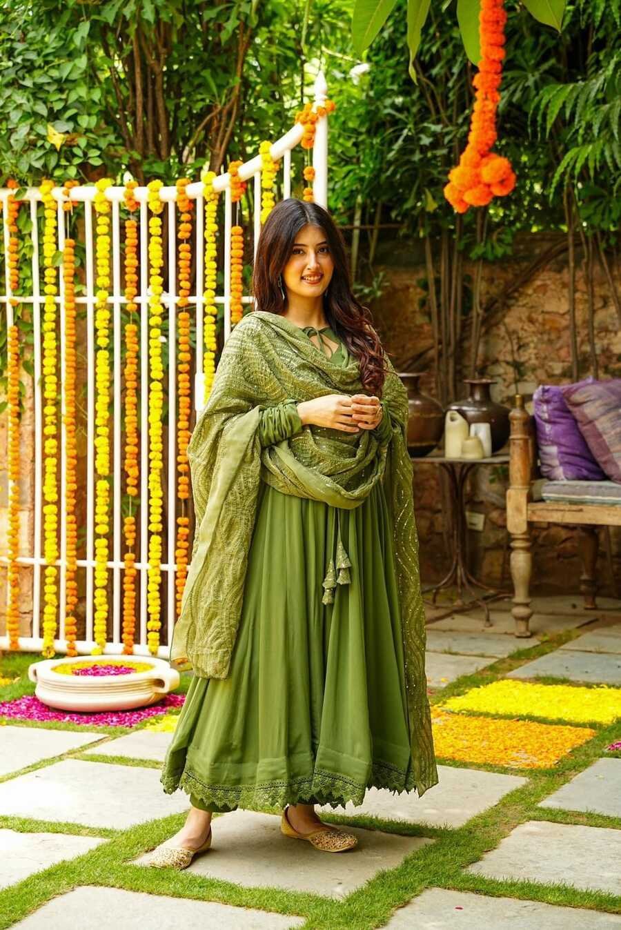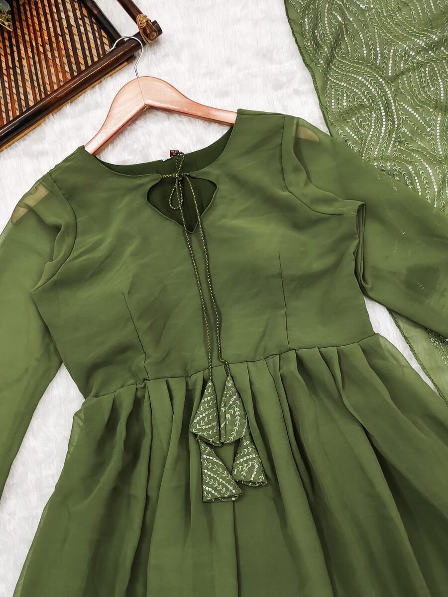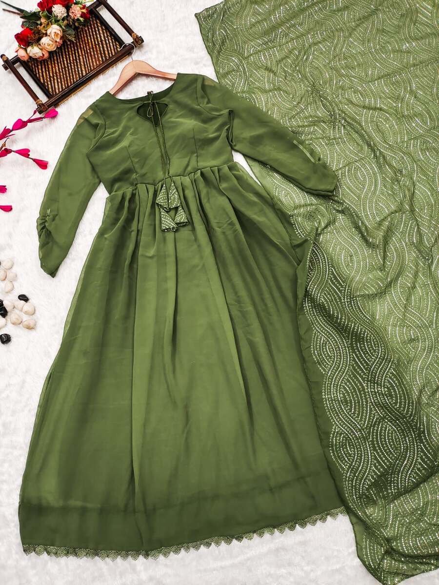 FANCY GEORGETTE WITH GPO LACE GOWN BOTTOM WITH EMBROIDERY WORK DUPATTA MEHNDI