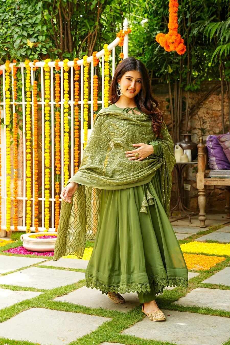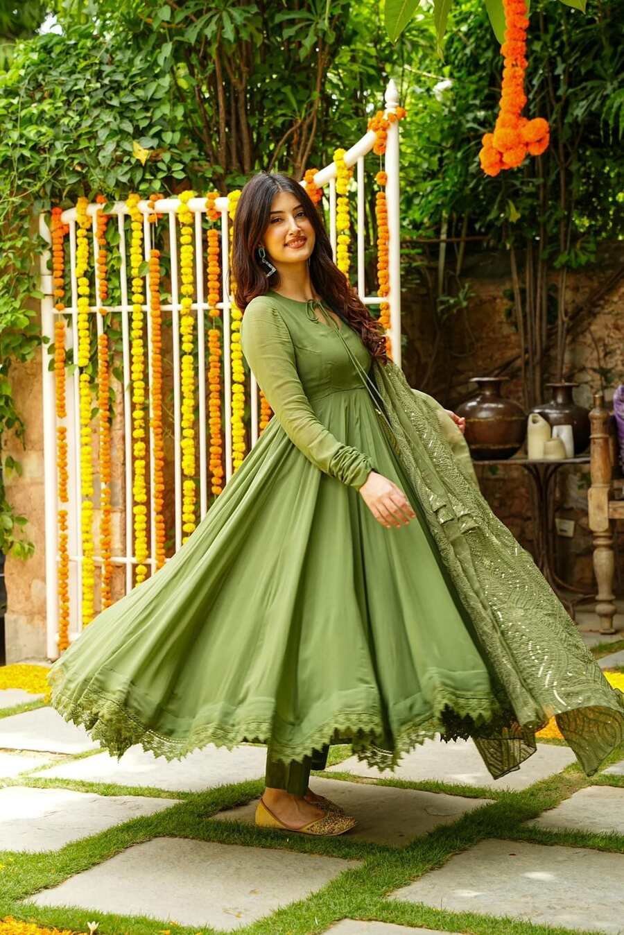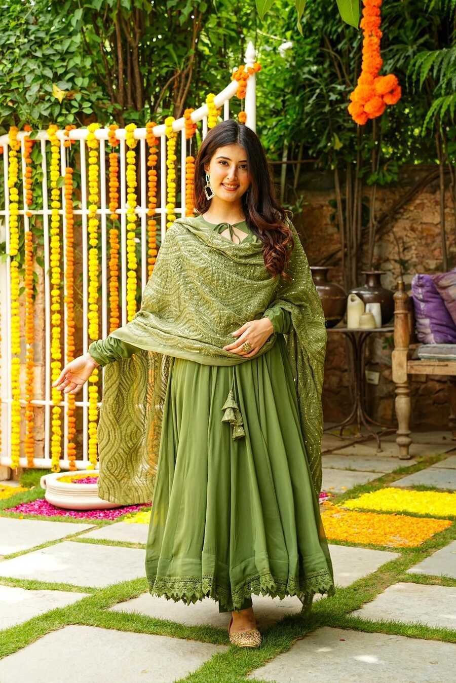 FANCY GEORGETTE WITH GPO LACE GOWN BOTTOM WITH EMBROIDERY WORK DUPATTA MEHNDI