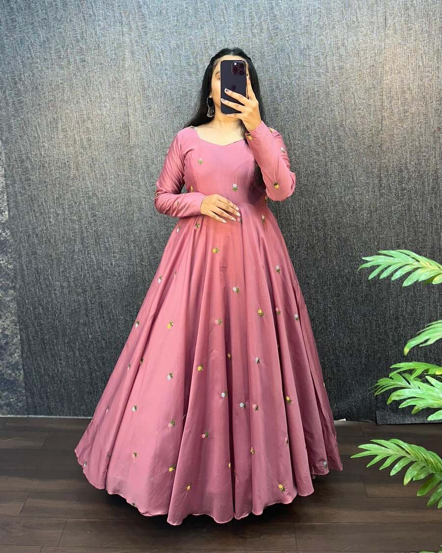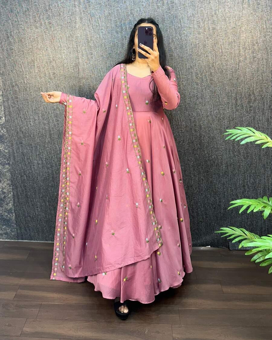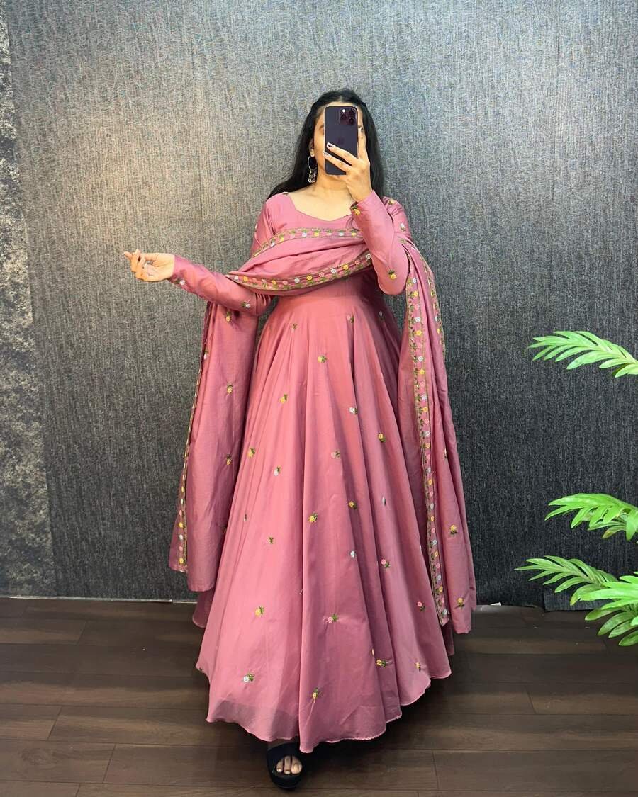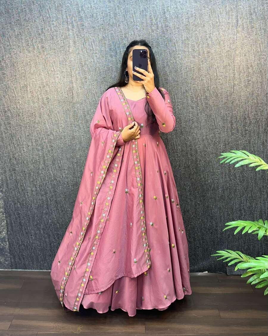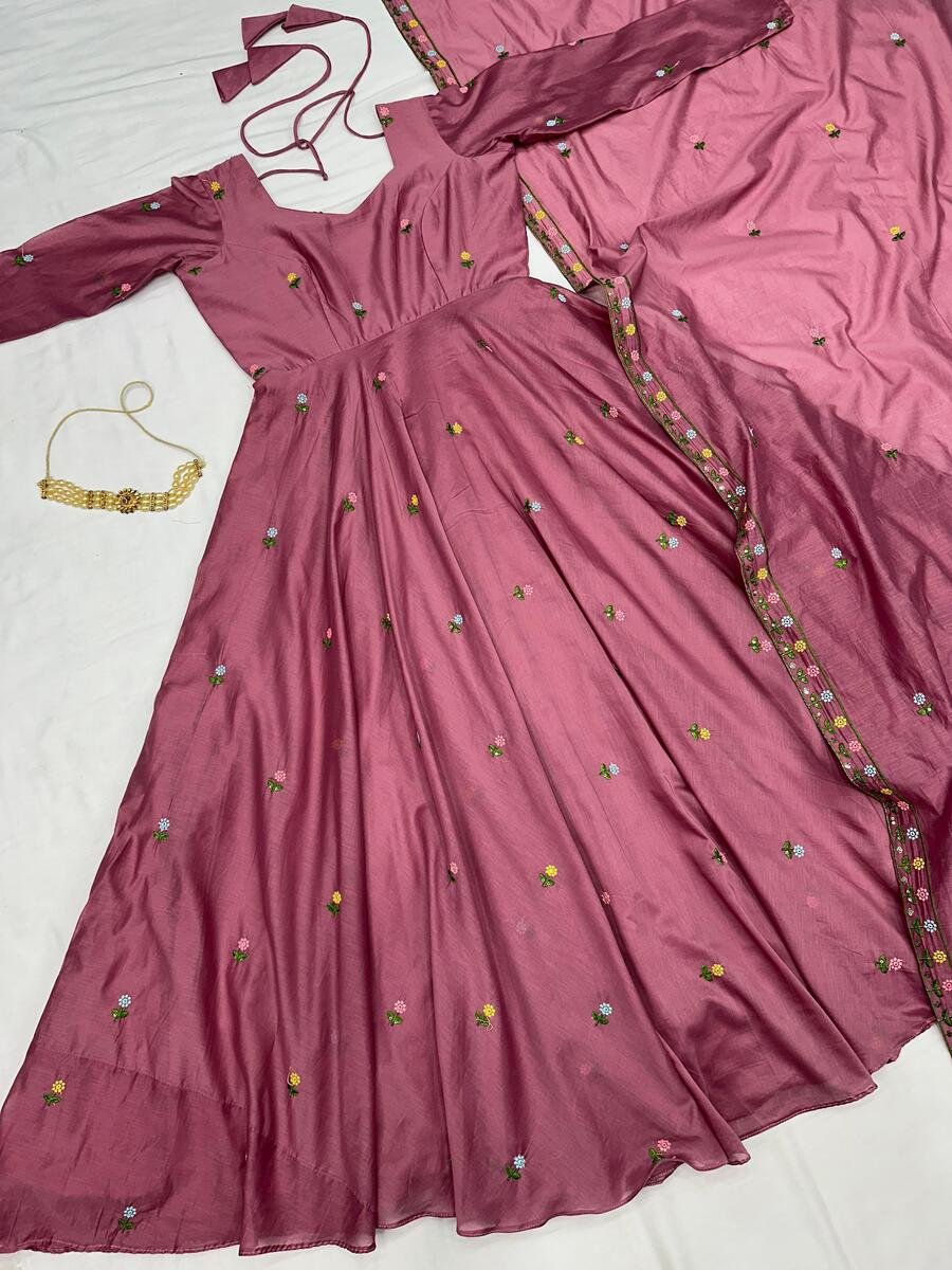 FANCY GYPSY SILK THREAD WORK GOWN WITH DUPATTA PINK