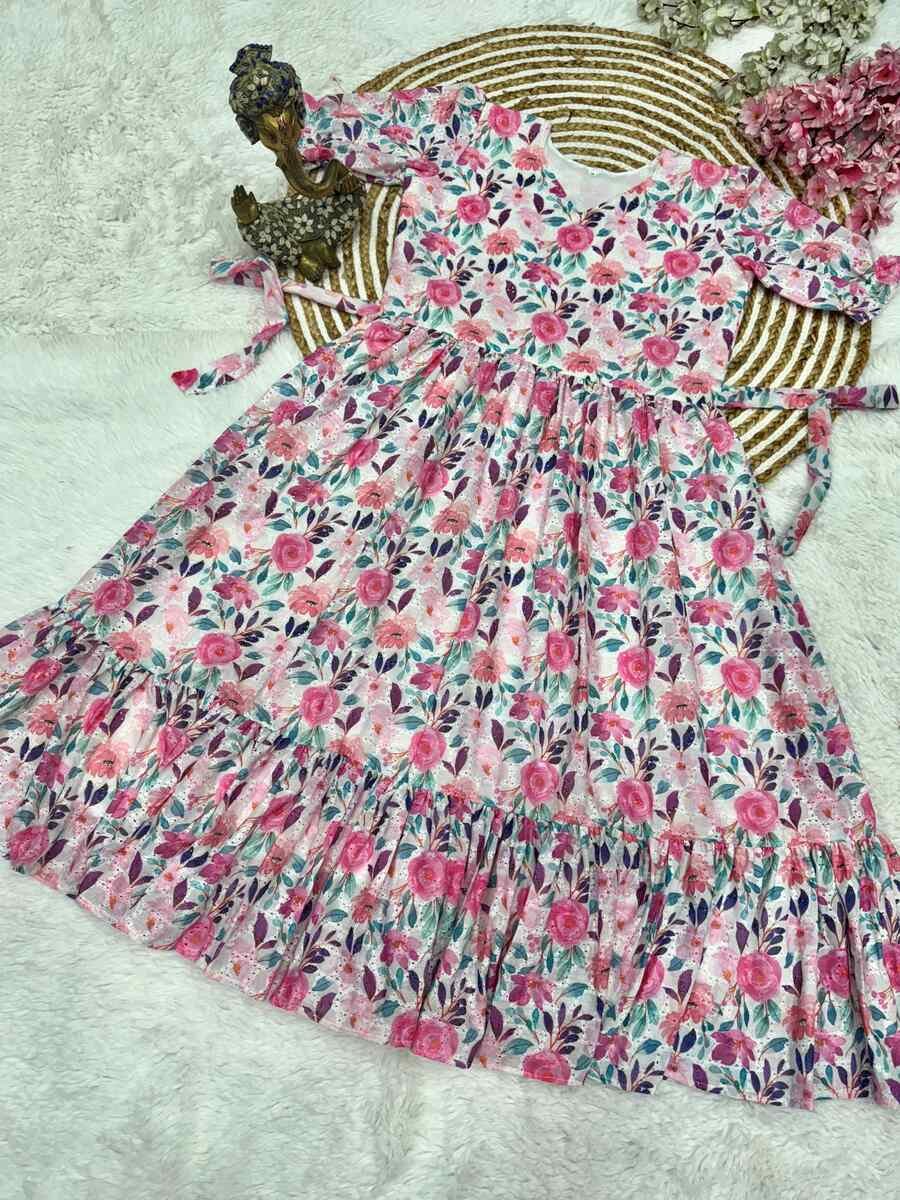 FANCY HAKOBA COTTON PRINTED ONE PIECE PINK