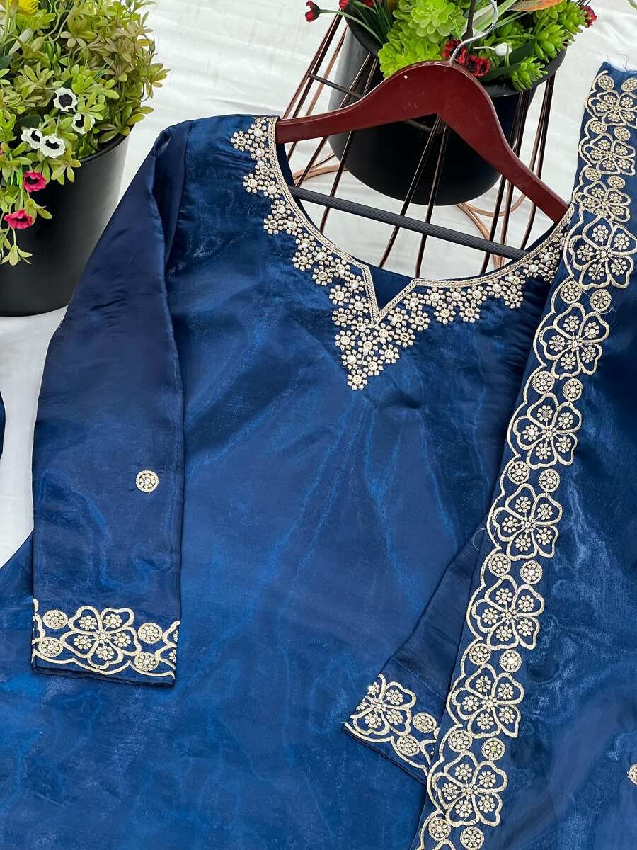 FANCY JIMMY CHOO SILK EMBROIDERY SEQUENCE WORK TOP PALAZZO WITH DUPATTA BLUE