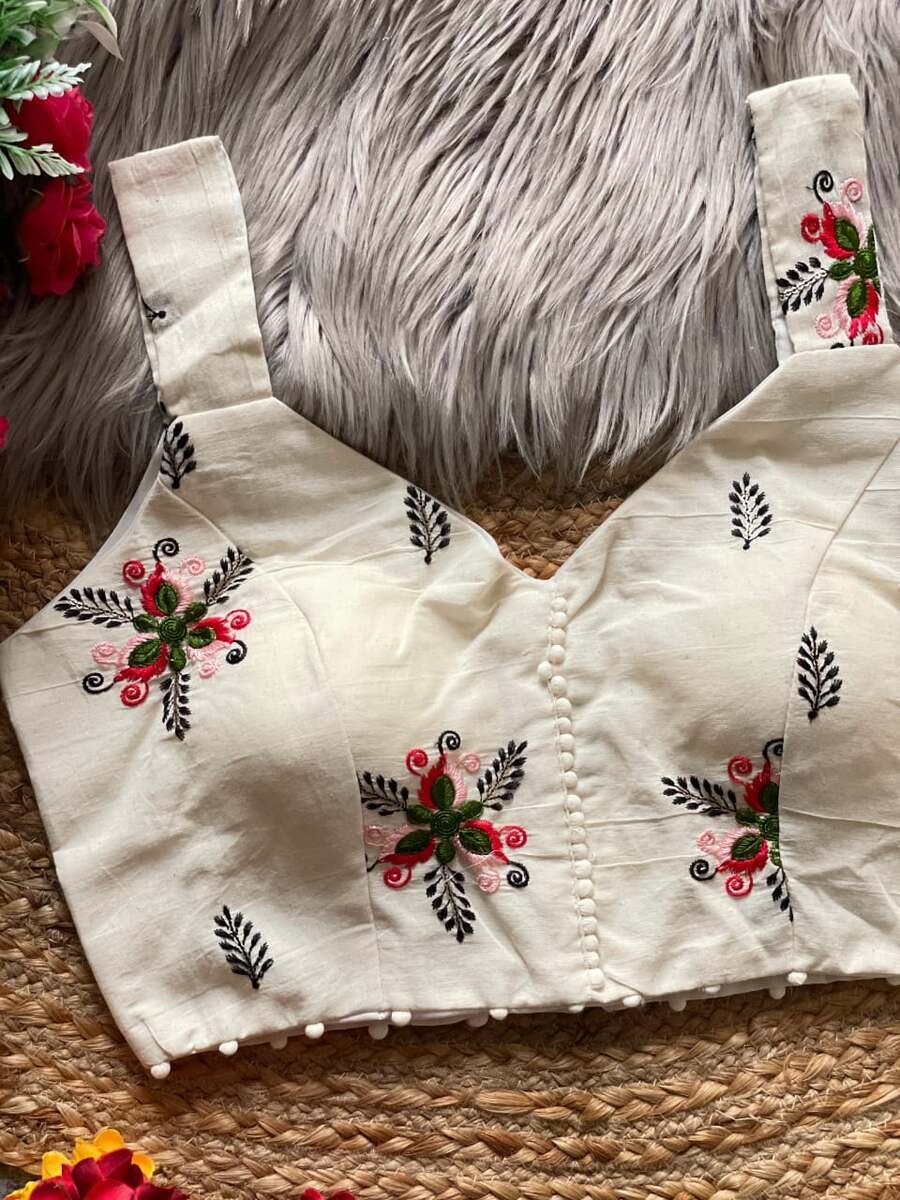 FANCY KHADI COTTON THREAD EMBOIDERY WORK STITCHED BLOUSE OFF WHITE