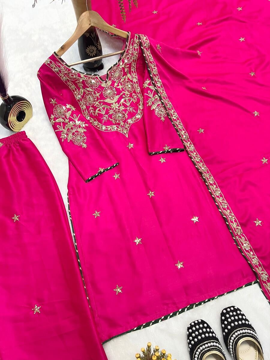 WORK :- HEAVY EMBROIDERY THREAD WORK WITH READY MADE LACE BORDER