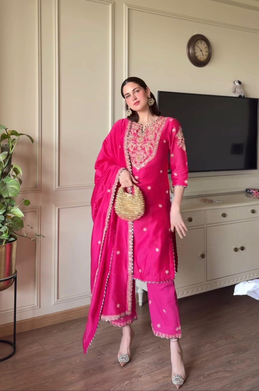 WORK :- HEAVY EMBROIDERY THREAD WORK WITH READY-MADE LACE BORDER