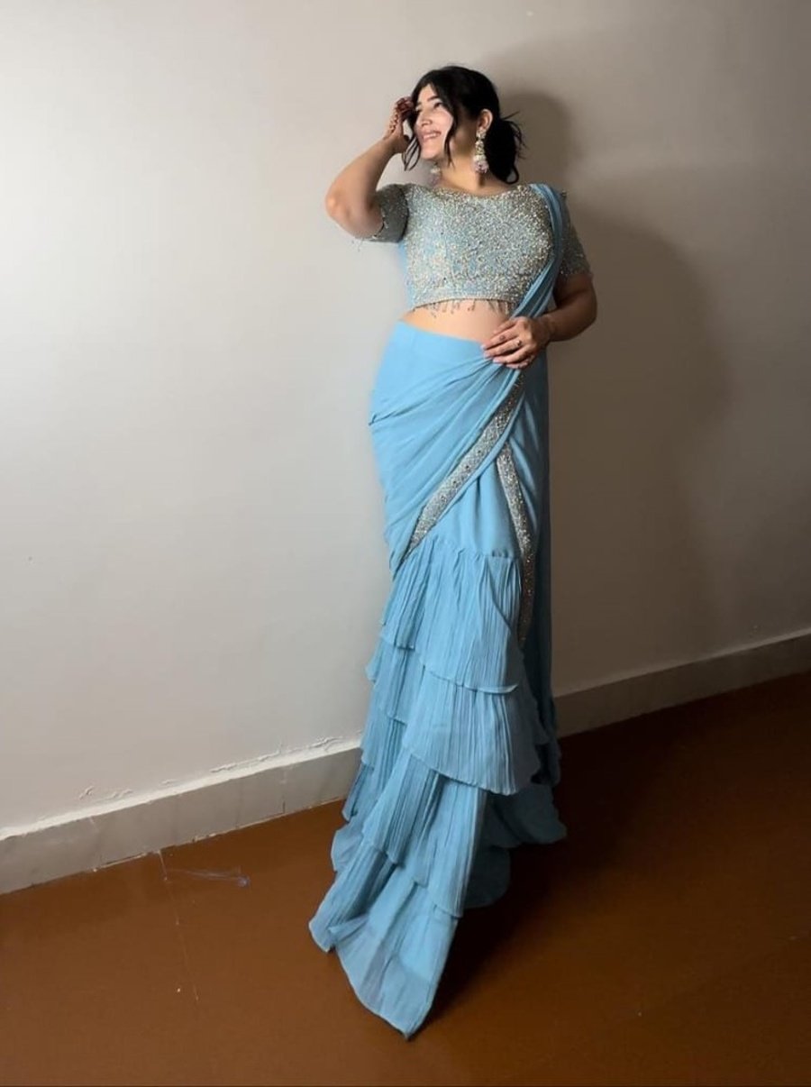 WORK : MULTI THREAD EMBROIDERY SEQUENCE WITH 4 LAYER RUFFLE AND FANCY LACE WORK WITH ATTACHED DUPATTA