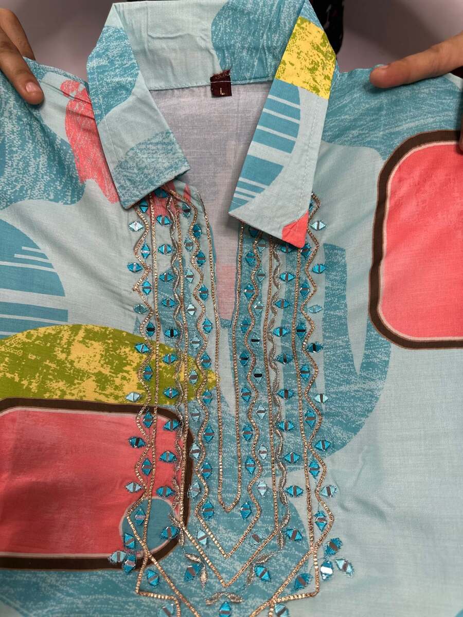 FANCY MUSLIN SILK DIGITAL PRINTED WITH ZARI AND ORIGINAL MIRROR HANDWORK CO-ORD SET SKY