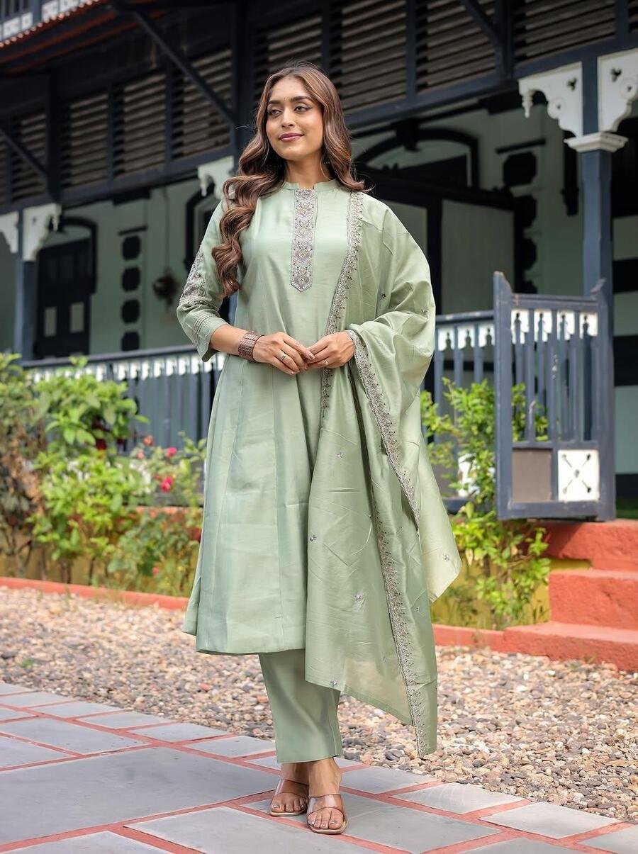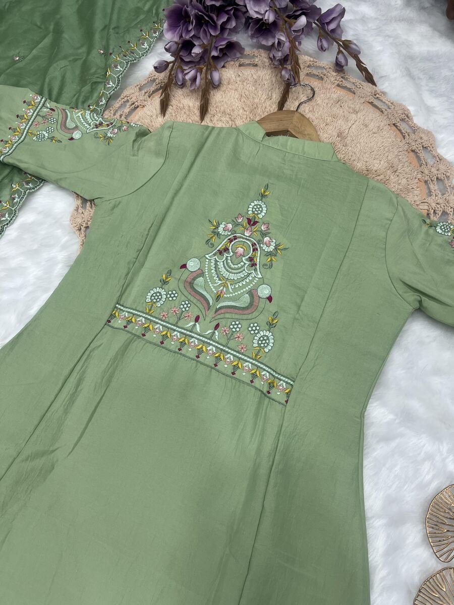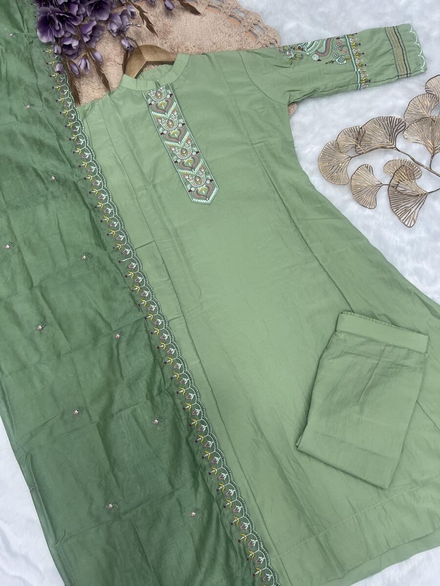 FANCY MUSLIN SILK EMBROIDERY WORK TOP BOTTOM WITH DUPATTA PISTA