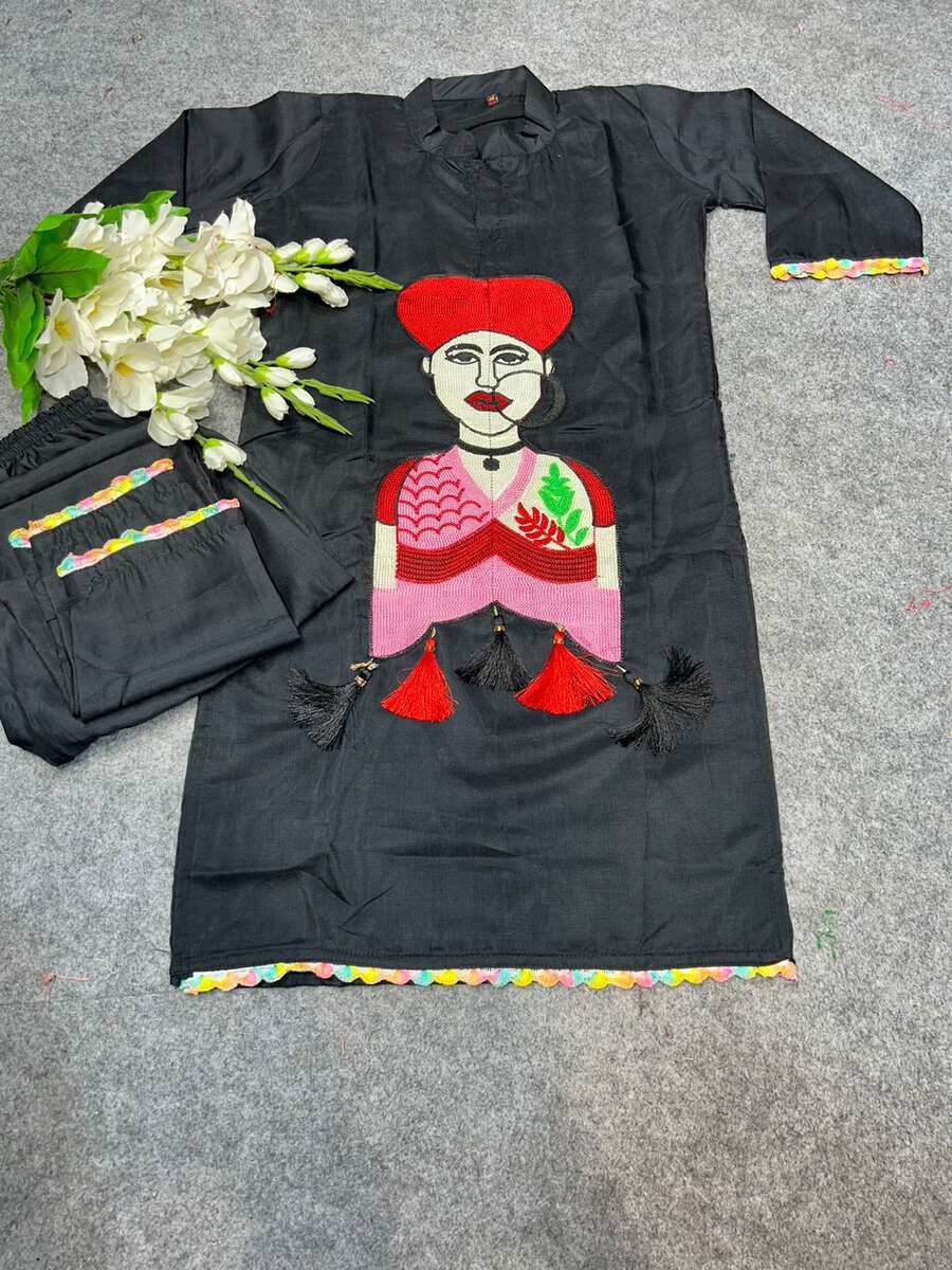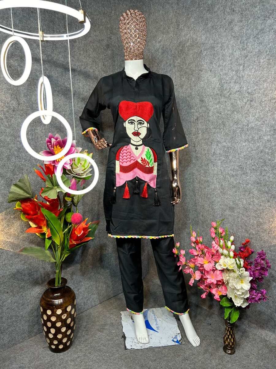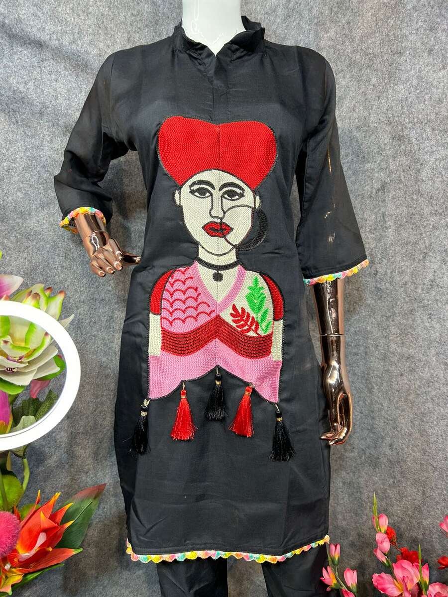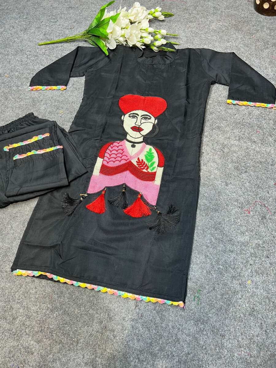 FANCY MUSLIN WITH EMBROIDERY CHAIN WORK TOP WITH BOTTOM BLACK