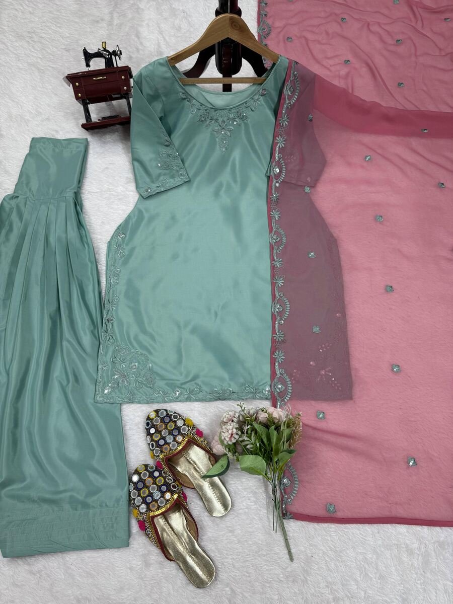 FANCY NATURAL CREPE THREAD WORK TOP PATIYALA WITH DUPATTA RAMA
