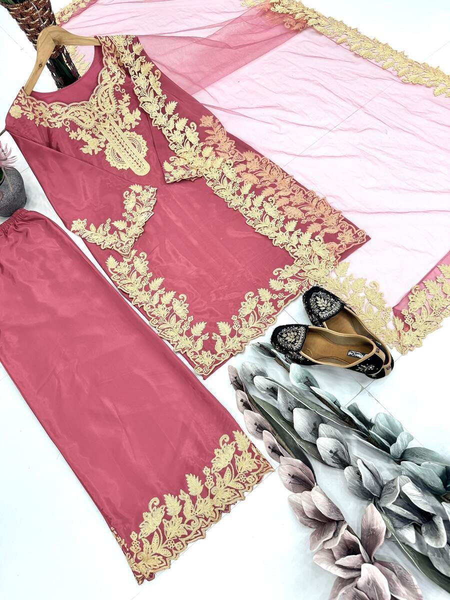 WORK : FOUR SIDE EMBROIDERY CHAIN STITCHED WORK