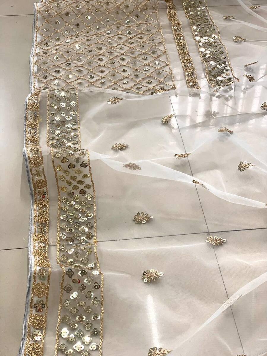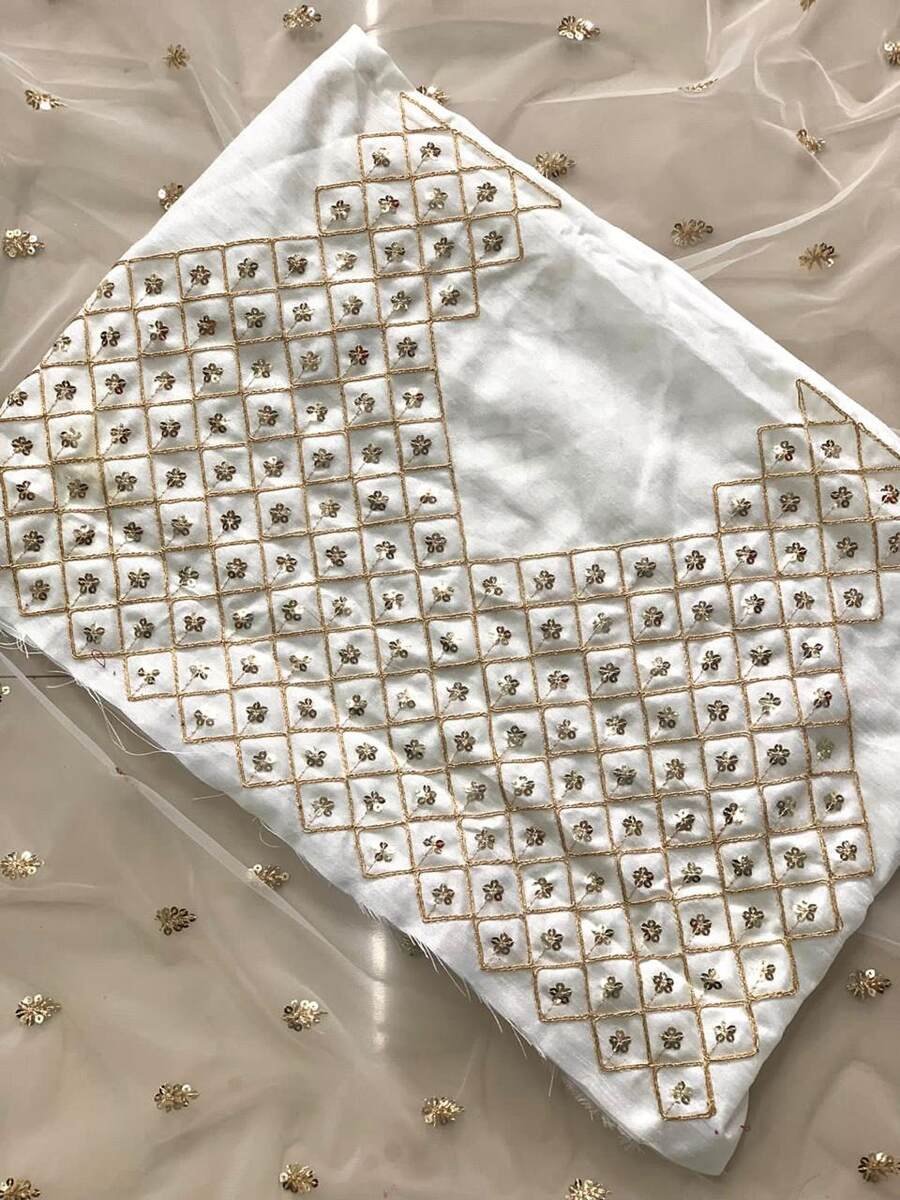 FANCY NET EMBROIDERY CODING SEQUENCE WORK SAREE WITH UNSTITCHED BLOUSE WHITE
