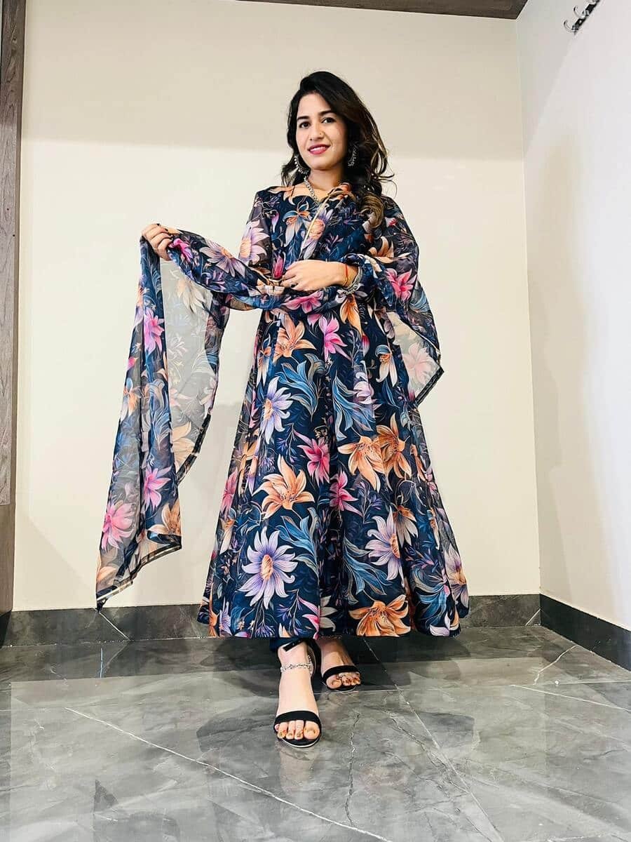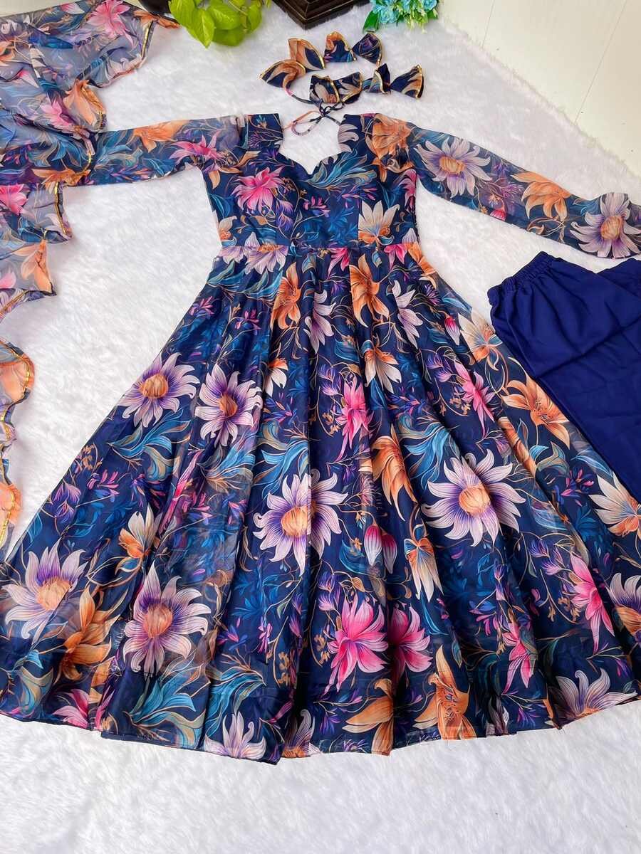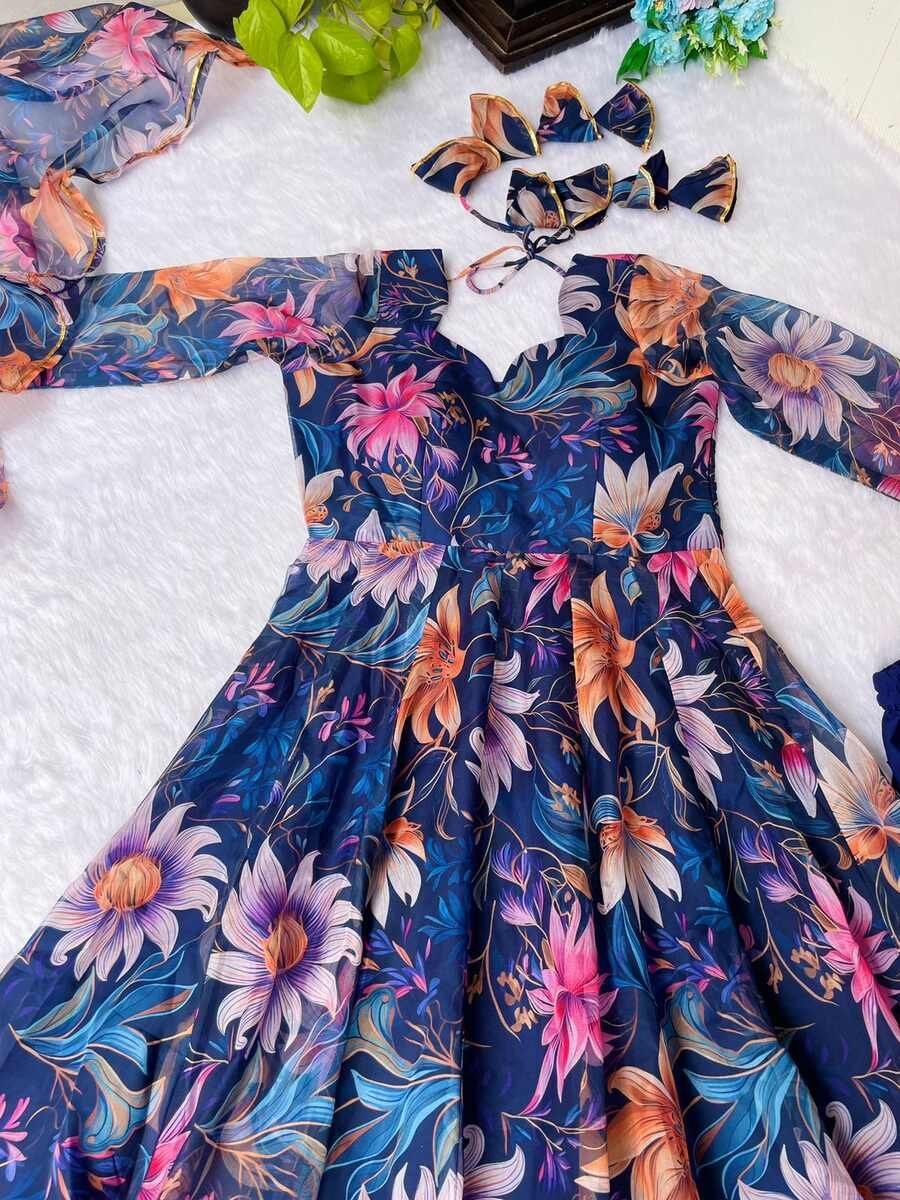 GOWN FEBRIC :- ORGANZA TABBY SILK HEAVY QUALITY FABRIC WITH DIGITAL PRINT AND