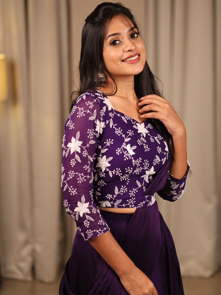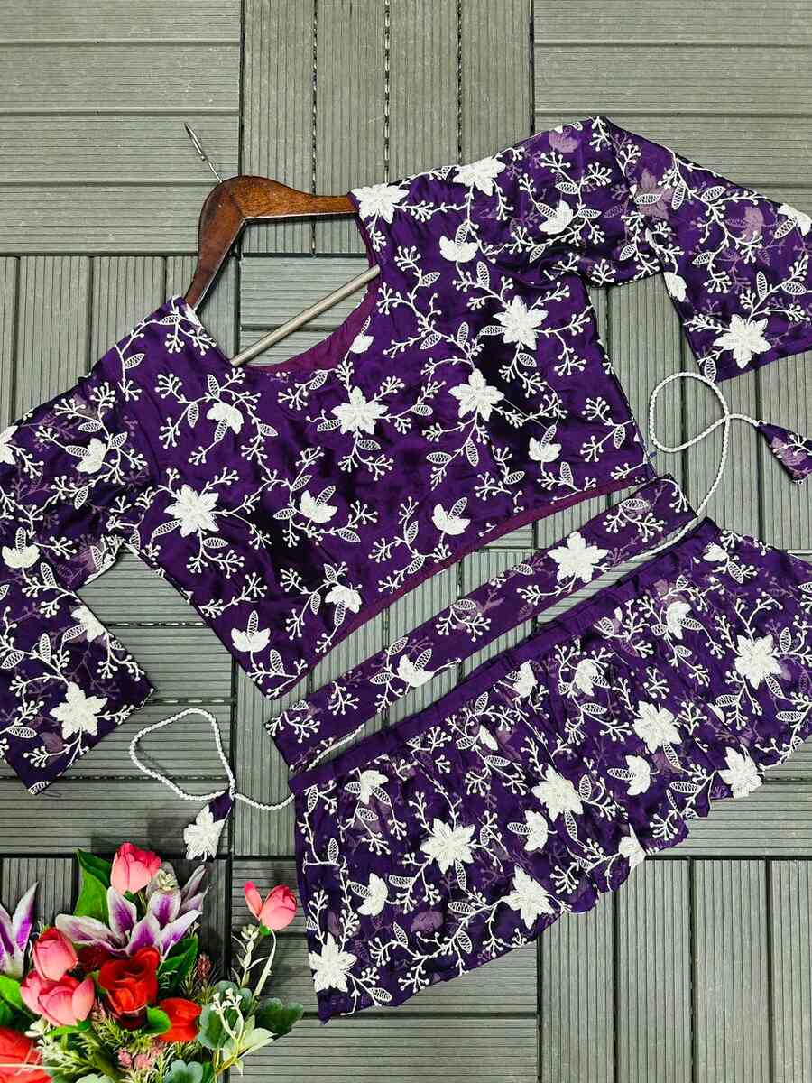 FANCY RANGOLI EMBROIDERY CODING WORK LEHENGA CHOLI WITH EXTRA ZALAR AND DUPATTA PURPLE