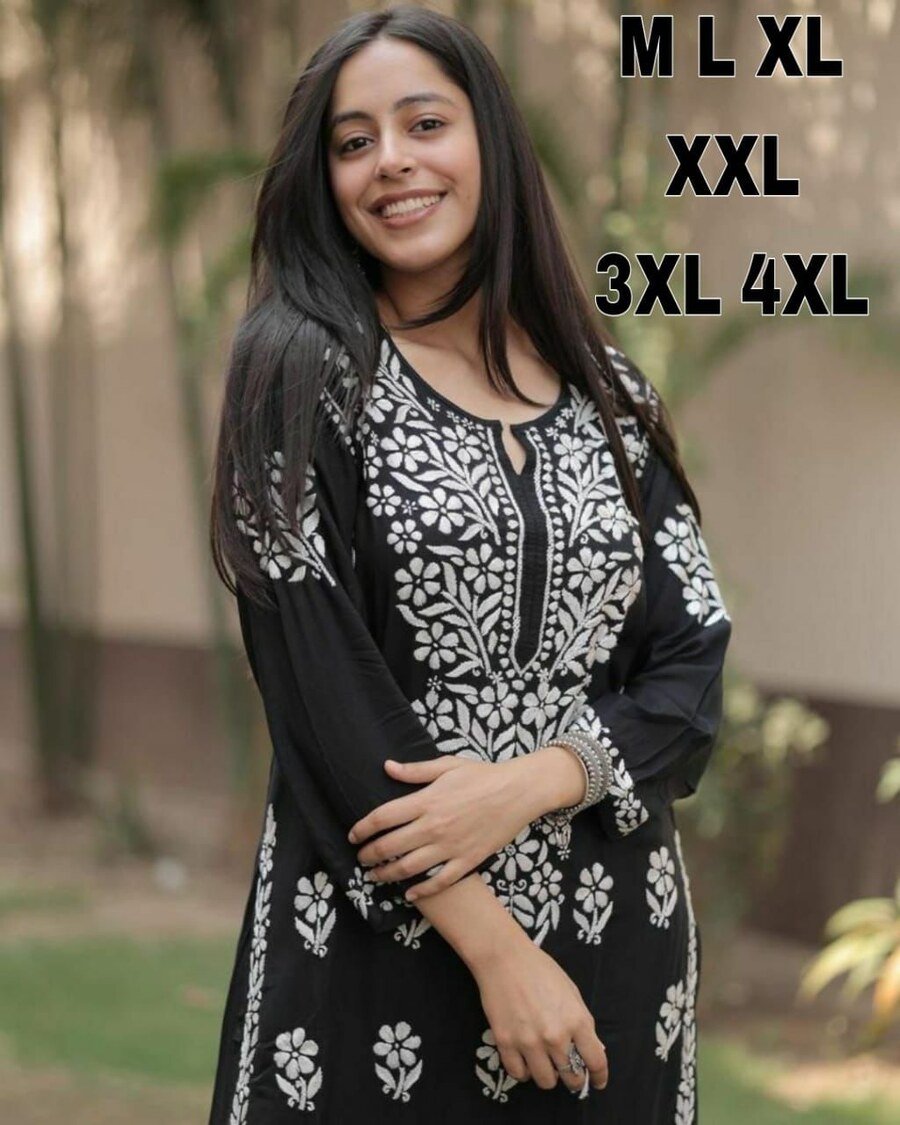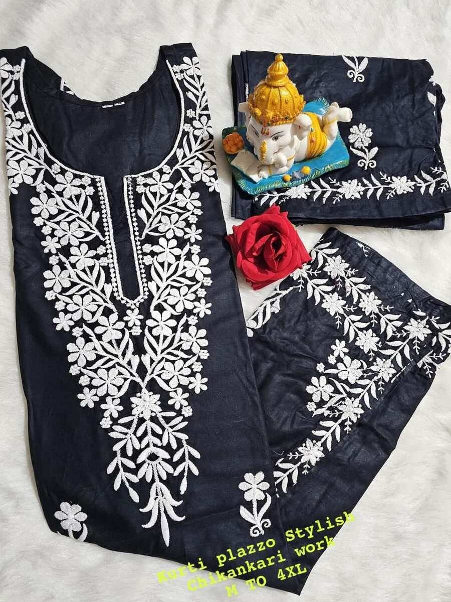 FANCY RAYON COTTON CHIKANKARI WORK KURTI PALAZZO SET BLACK