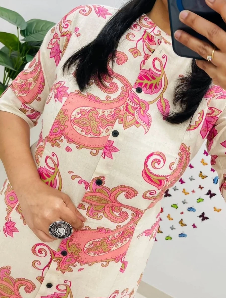 FANCY RAYON DIGITAL PRINT WORK CO-ORD SET PEACH