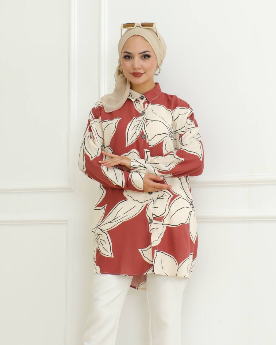 FANCY RAYON DIGITAL PRINTED TOP PENT SET WITH HIJAB PEACH