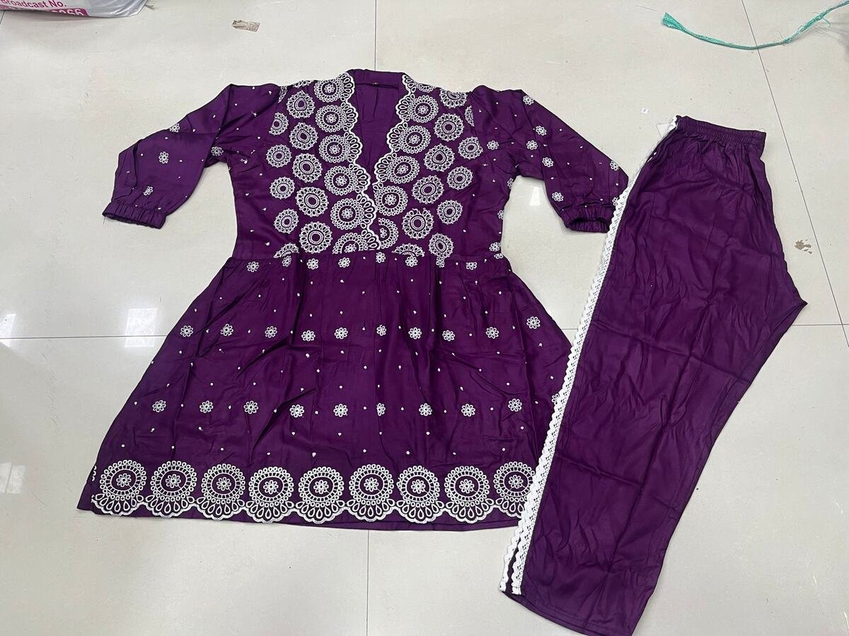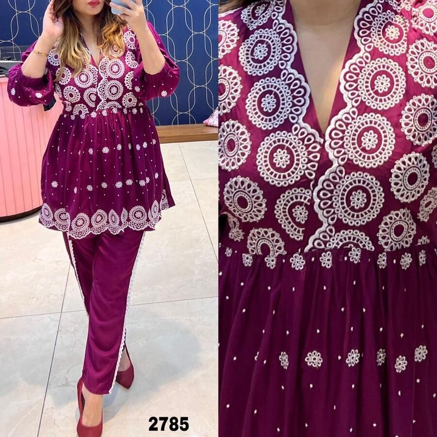FANCY RAYON EMBROIDERY WORK CO-ORD SET DESISGN TOP BOTTOM WINE