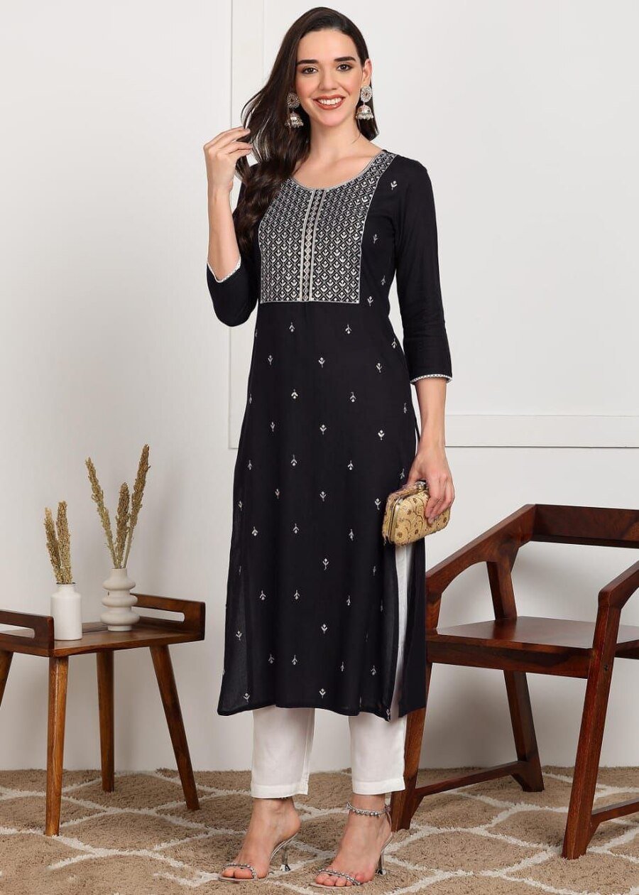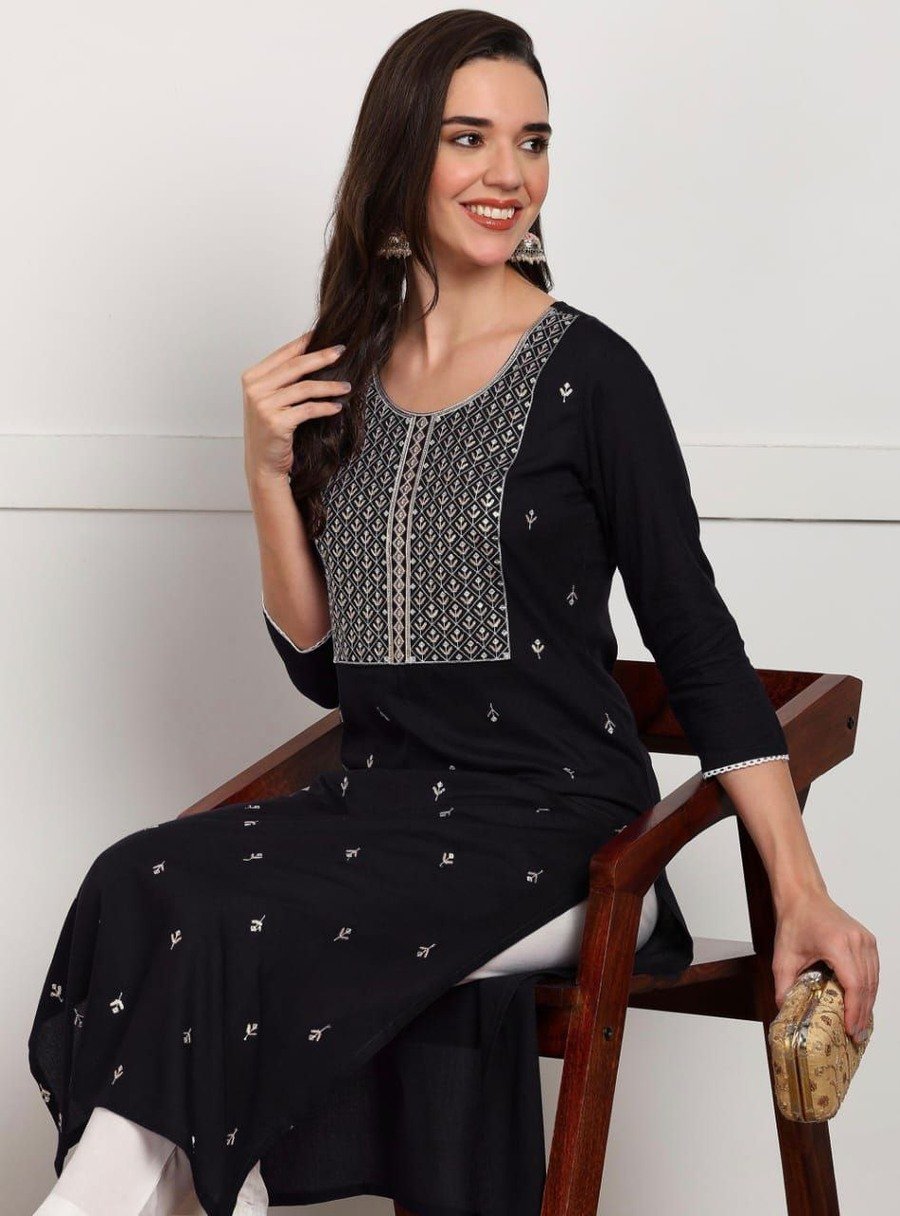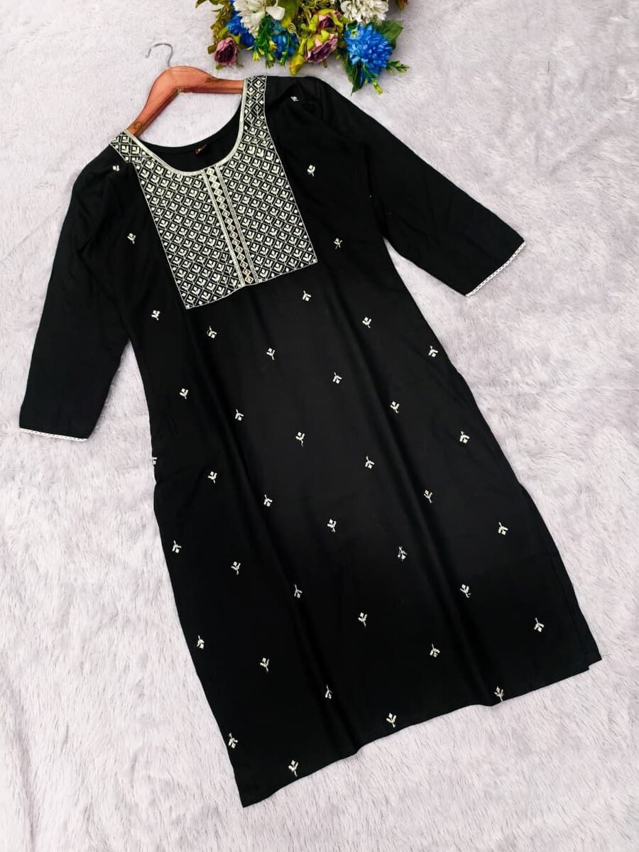 FANCY RAYON EMBROIDERY WORK KURTI BLACK