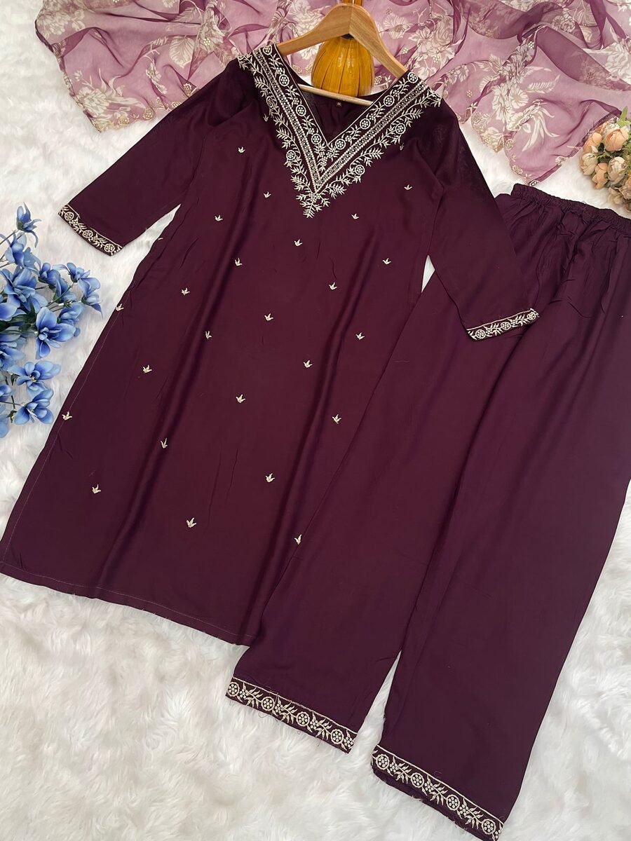 FANCY RAYON EMBROIDERY WORK TOP BOTTOM WITH DUPATTA WINE