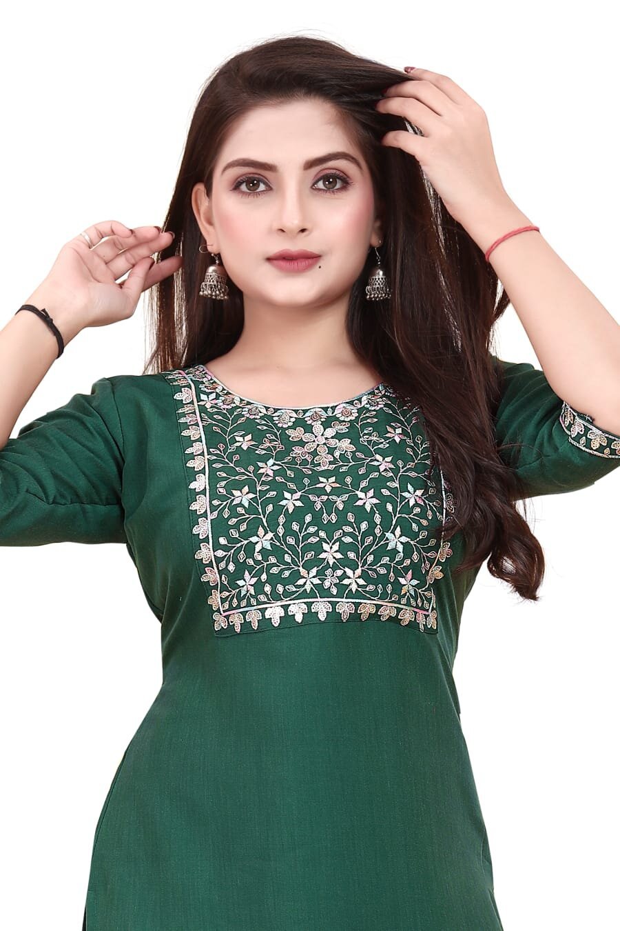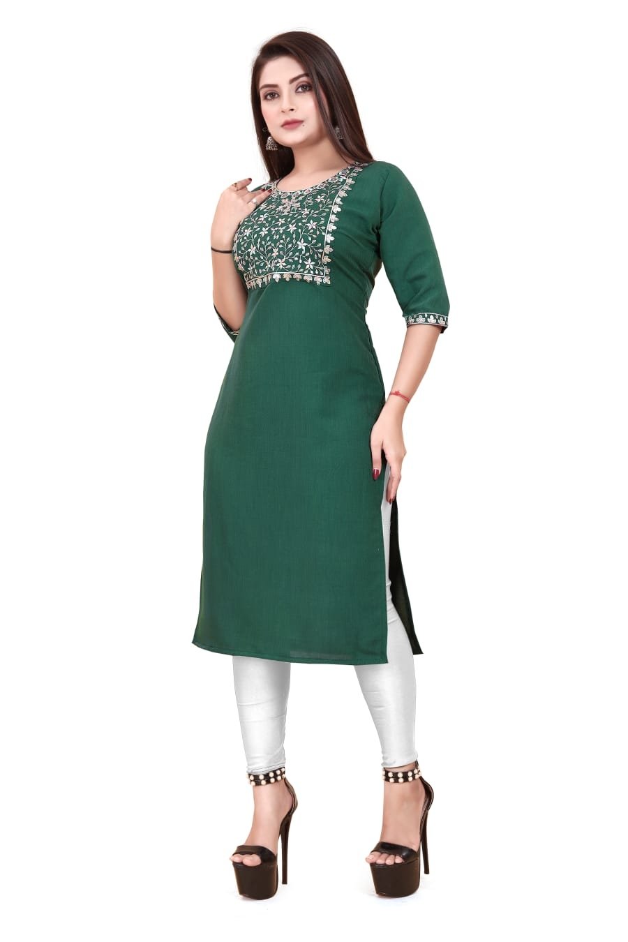 FANCY RAYON SEQUENCE EMBROIDERY WORK ONLY KURTI GREEN