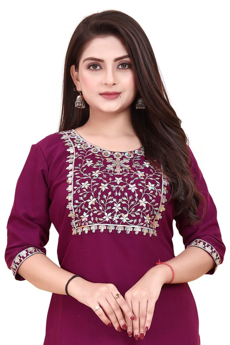 KURTI FABRIC :- RAYON WITH BEAUTIFUL SEQUENCE EMBROIDERY WORK
