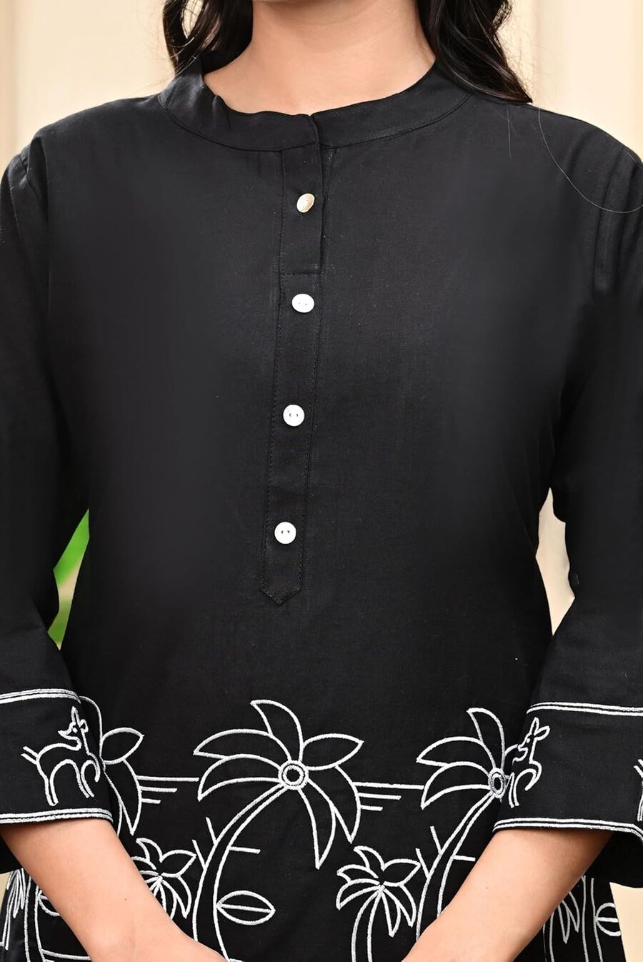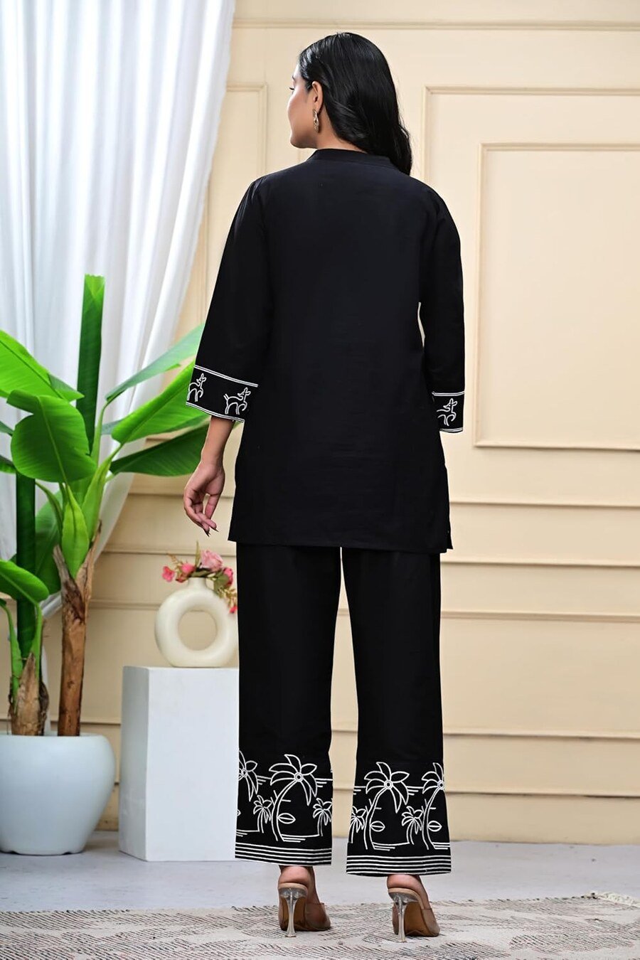 FANCY RAYON SILK EMBROIDERY WORK CO-ORD SET BLACK