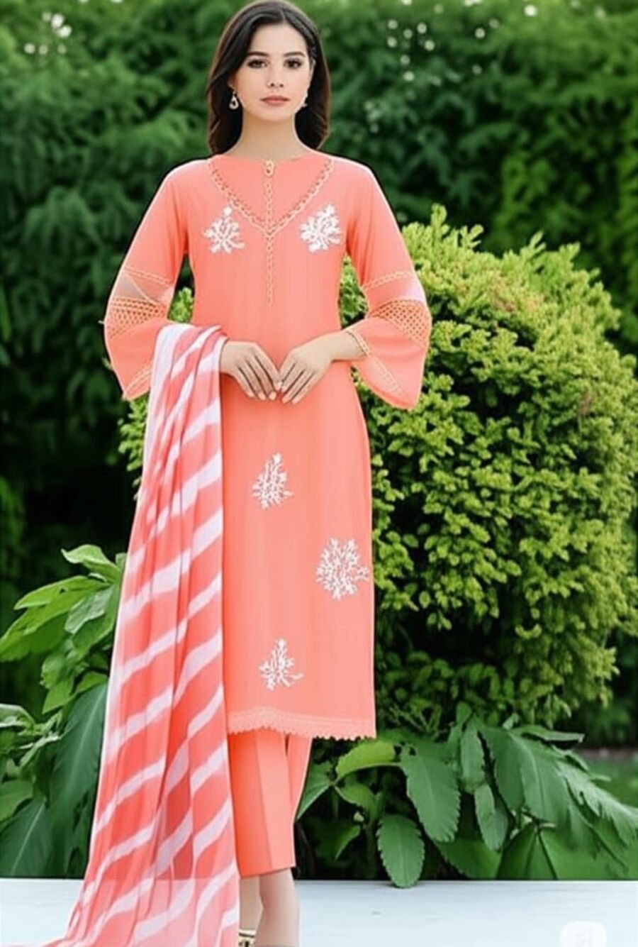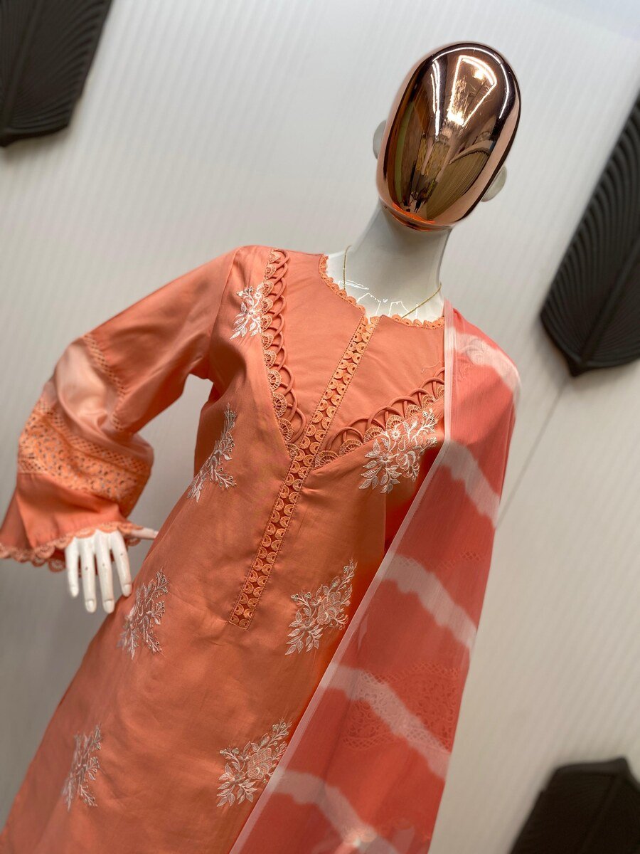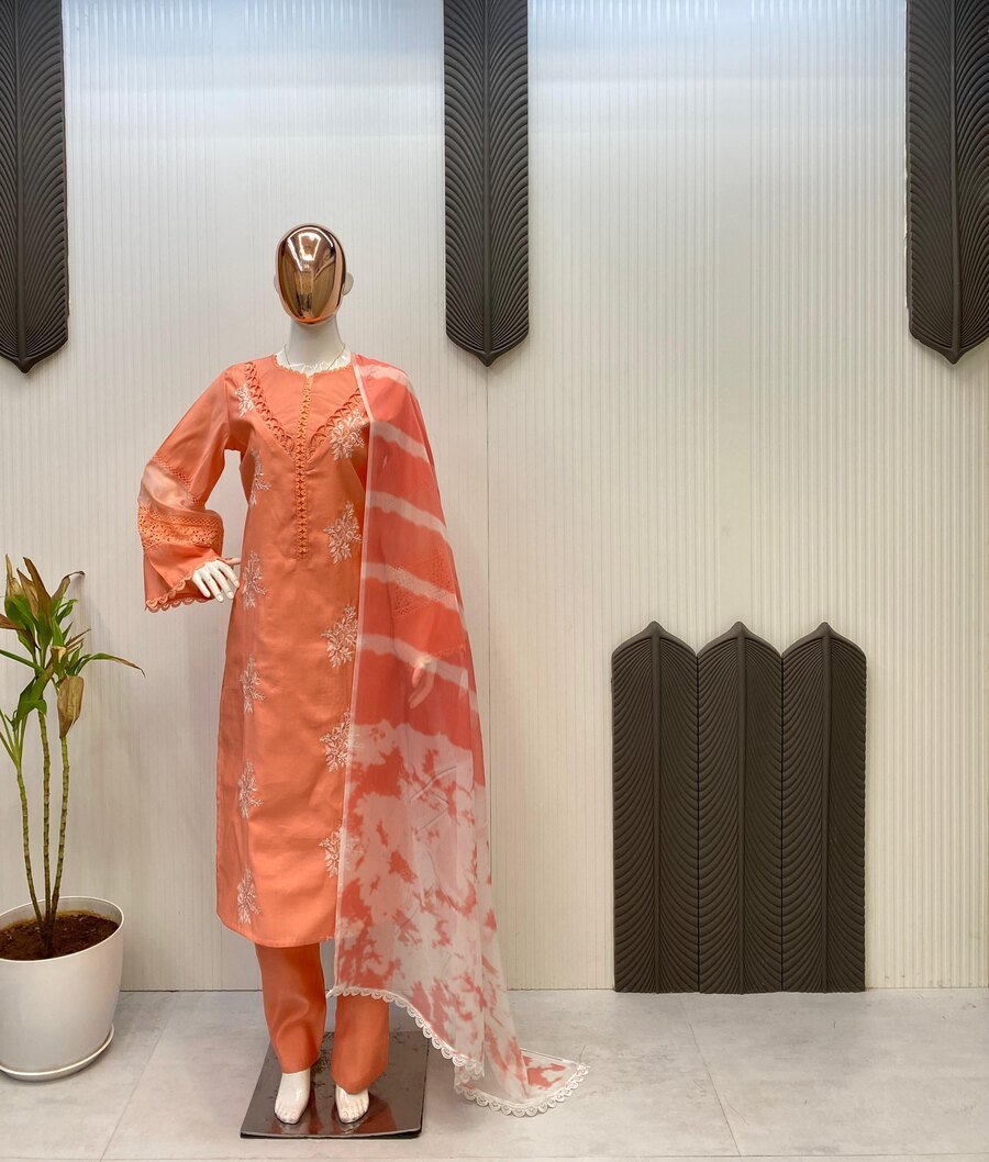 WORK : EMBROIDERY WORK AND GPO LACE WITH SOFT ORGANZA IN SLEEVES DESIGN