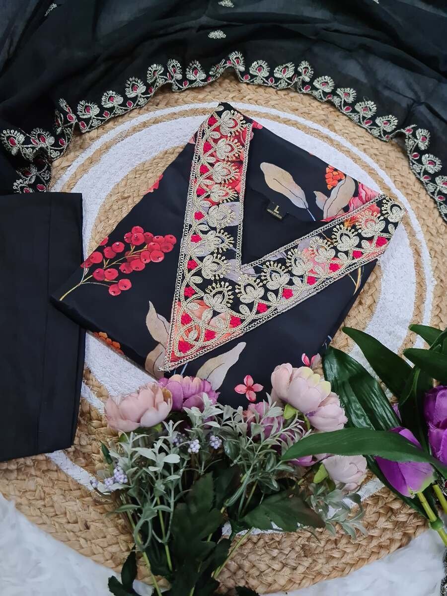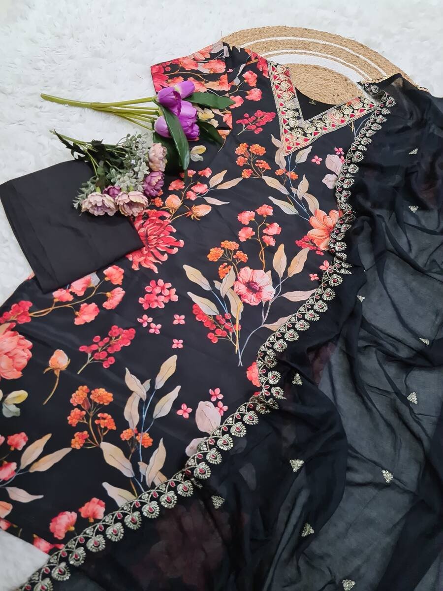 TOP FABRIC : PURE RUSSIAN SILK WITH SEQUENCE CODING EMBROIDERY WORK