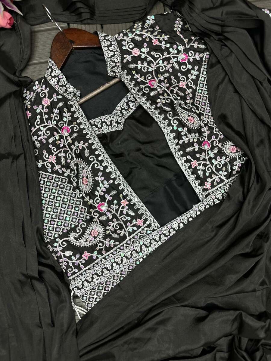 FABRIC : HEAVY SATIN CREPE WITH EMBROIDERY WORK