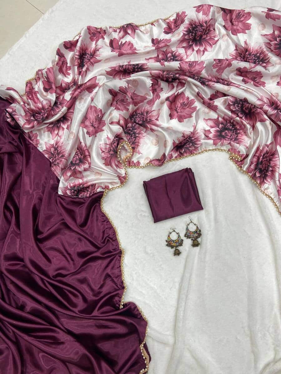 WORK :- DIGITAL PRINT FLOWER PALLU WITH PEARL LACE