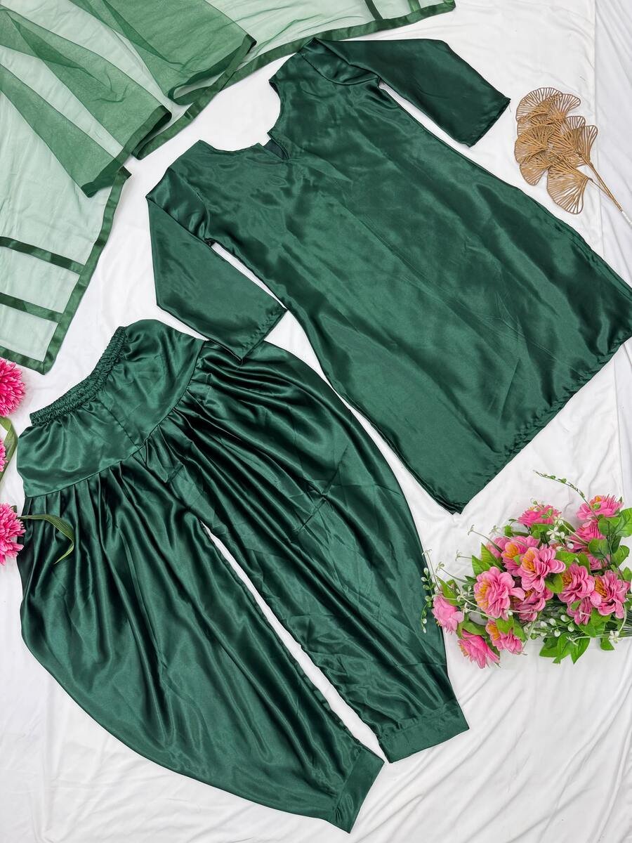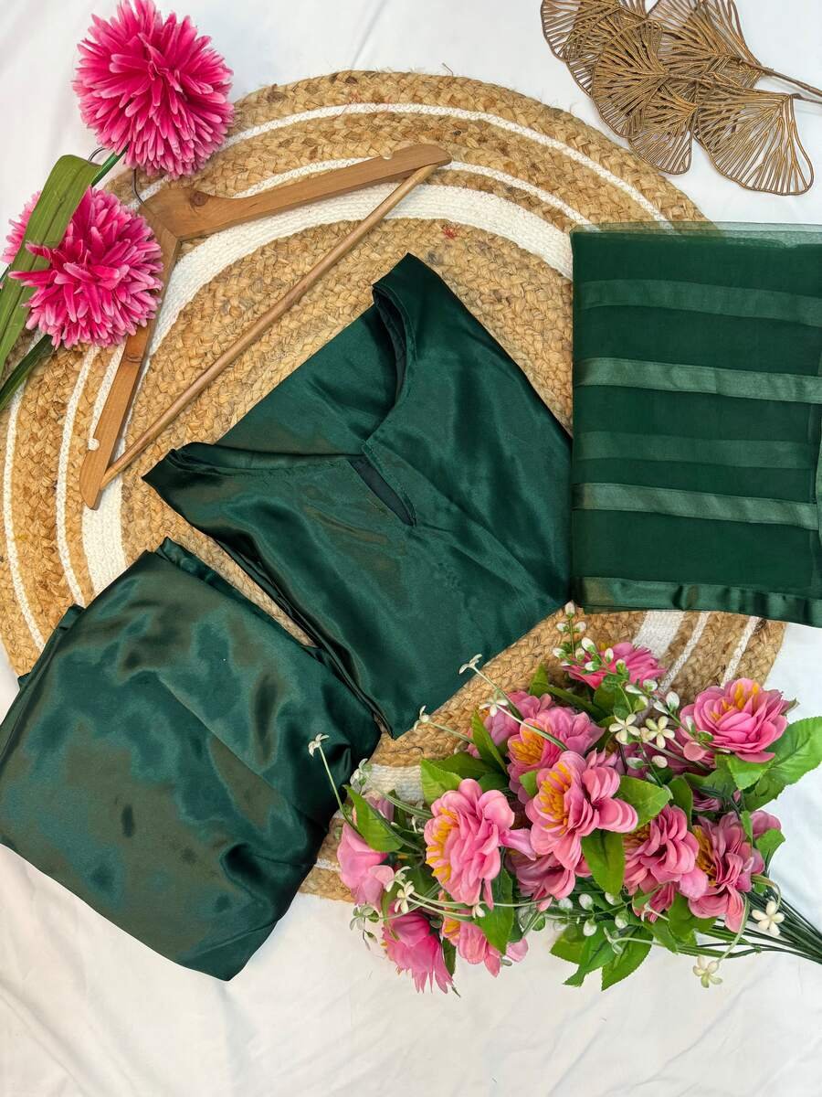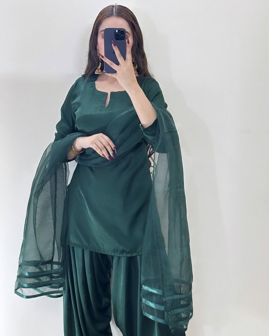 FANCY SATIN SILK PLAIN TOP PATIYALA WITH FANCY LACE BORDER DUPATTA GREEN