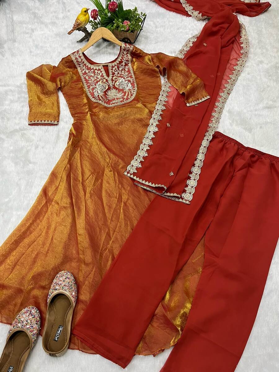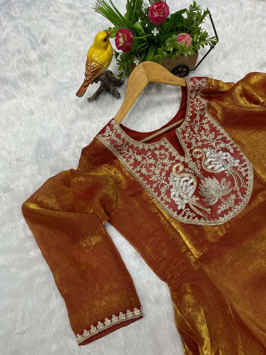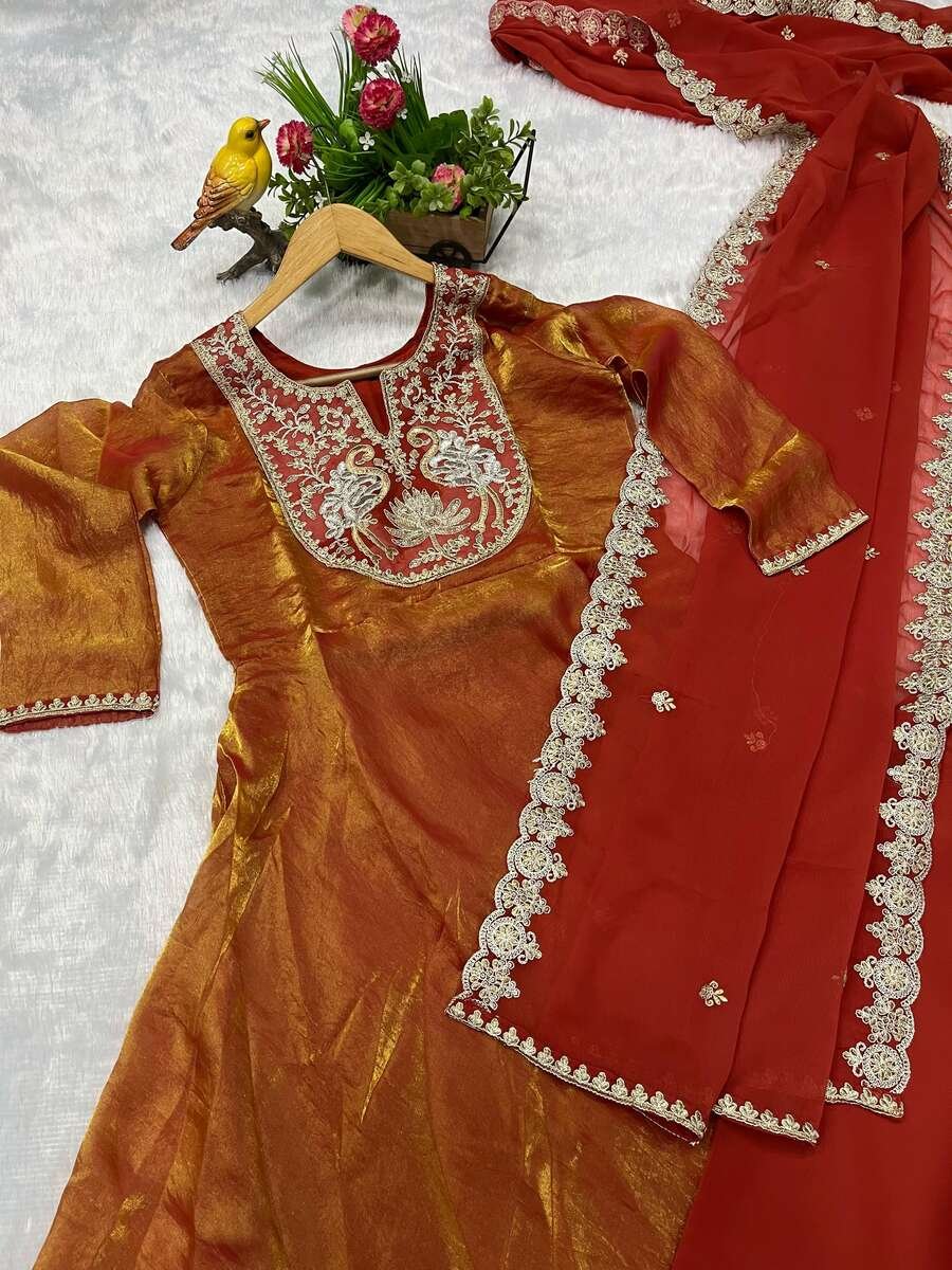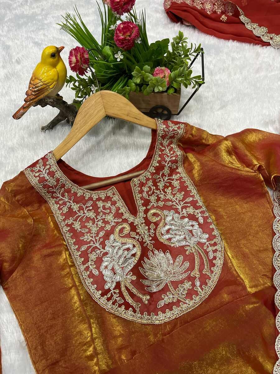 WORK : BEAUTIFUL EMBROIDERED DESIGN OF BIRD WITH FLOWER OF SEQUENCE AND JARI