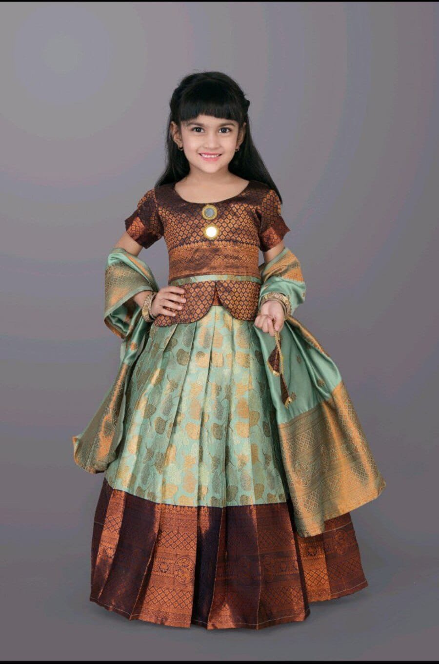 FANCY SILK JACQUARD WEAVING WORK KID’S WEAR LEHENGA CHOLI WITH DUPATTA SEA GREEN