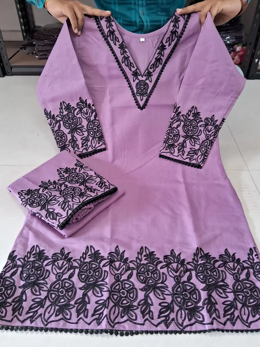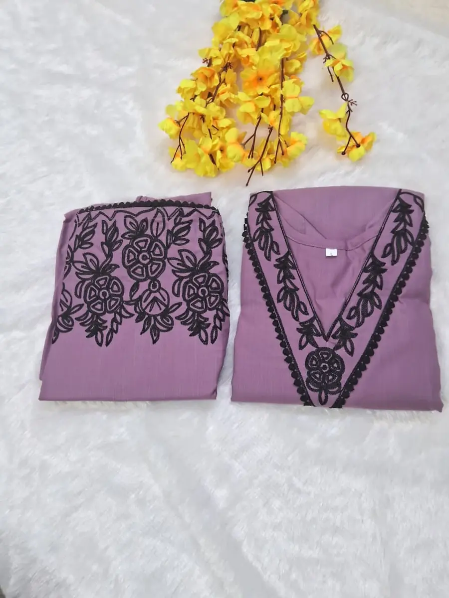 FANCY SLUB COTTON EMBROIDERY CHIAN WORK CO-ORD SET PURPLE
